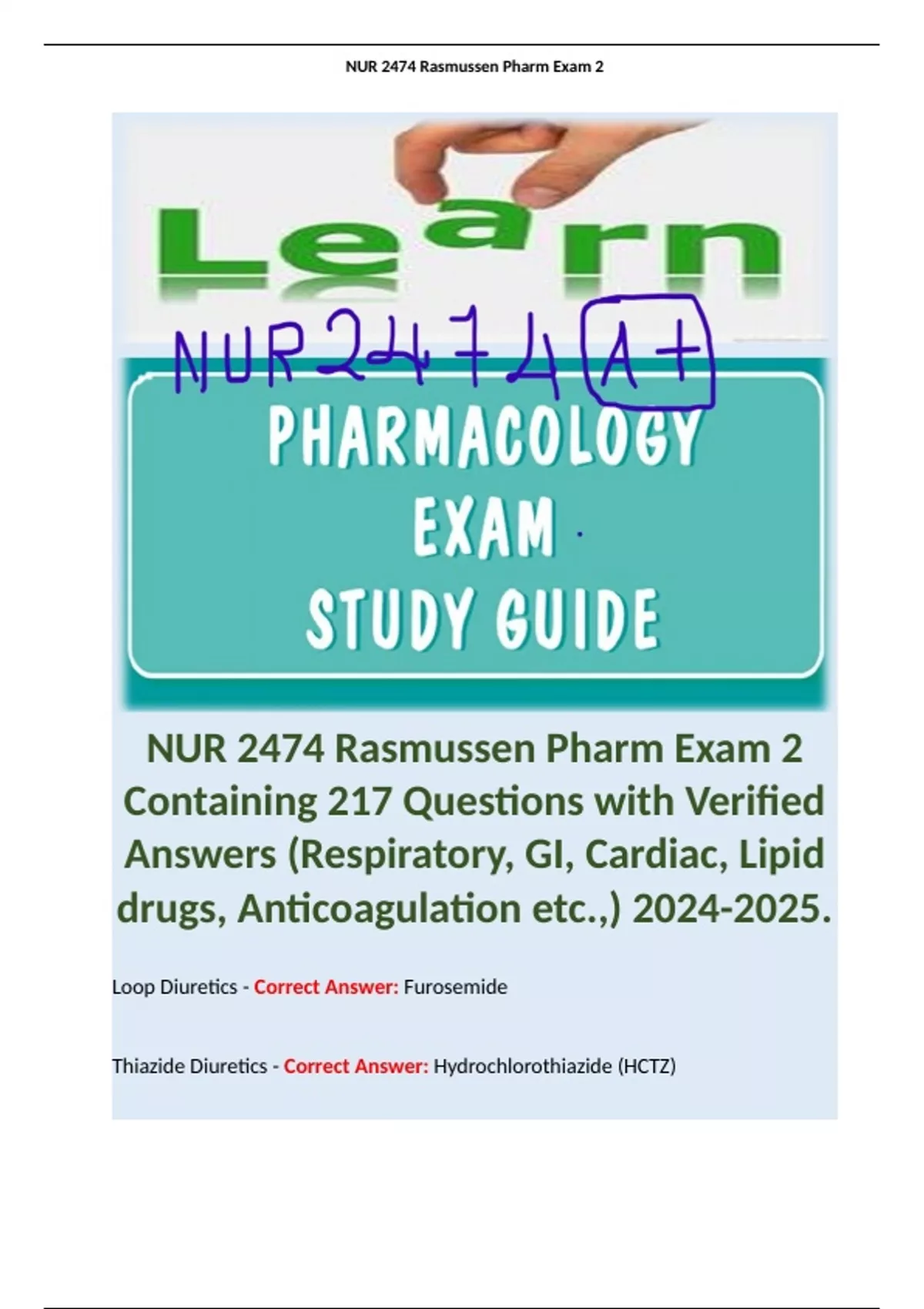 - NUR 2474 Rasmussen Pharm Exm 2 Containing 217 Que