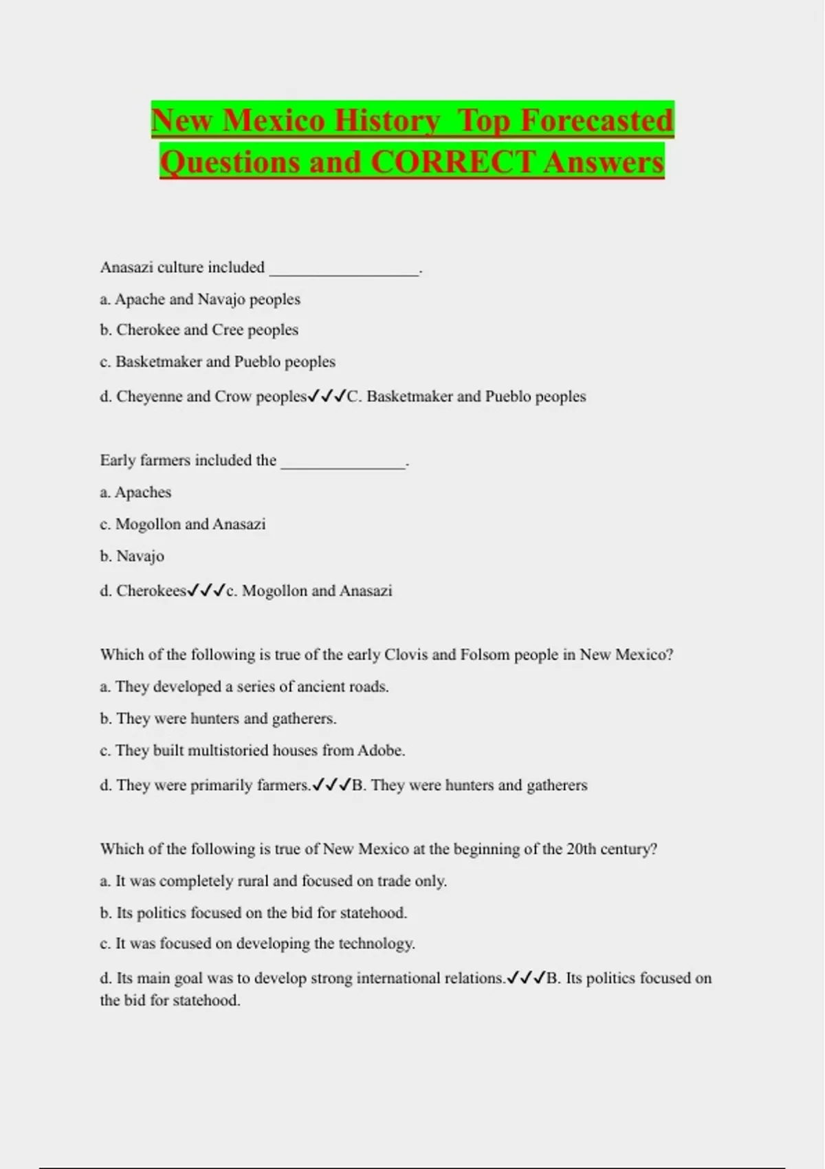 New Mexico History Top Forecasted Questions and CORRECT Answers