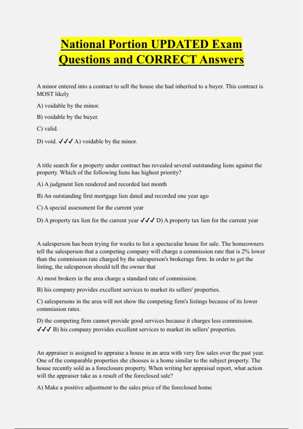 National Portion UPDATED Exam Questions and CORRECT Answers