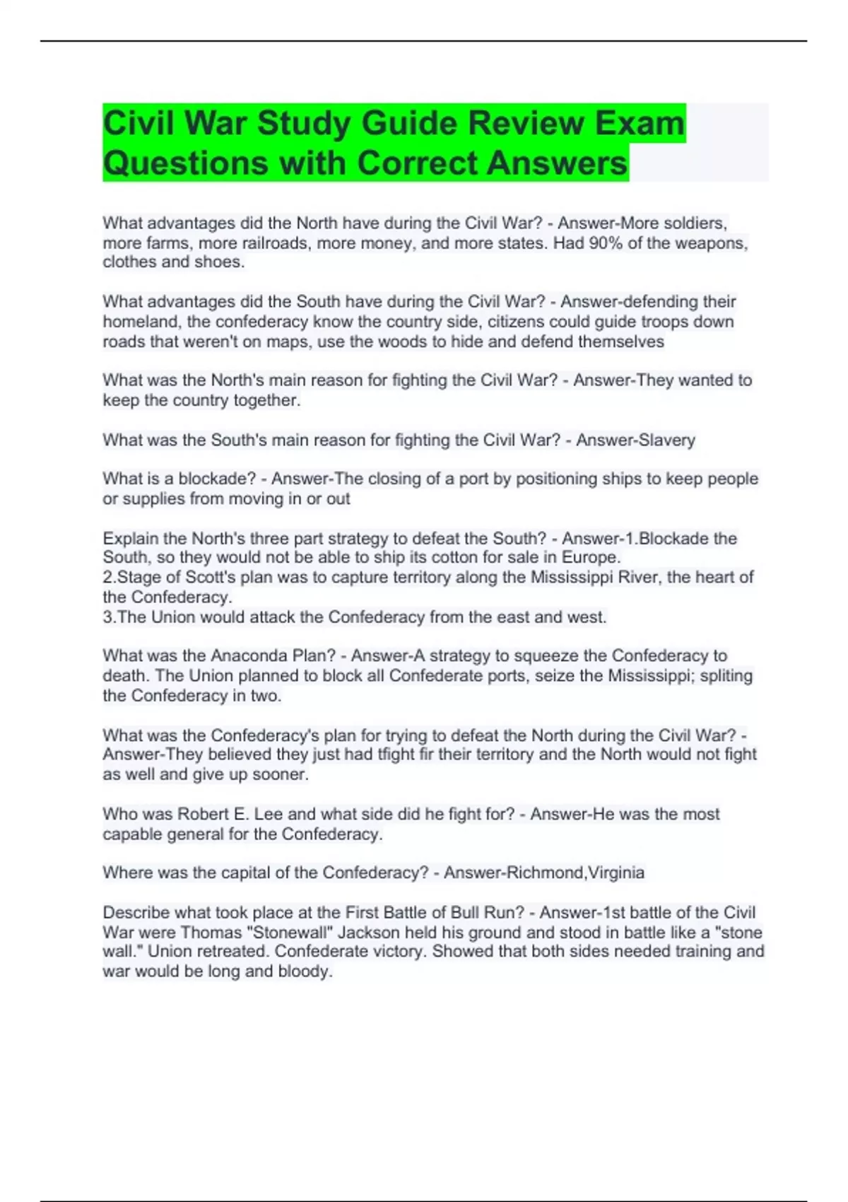 What was the Anaconda Plan? - Answer-A strategy to squeeze the Confederacy to