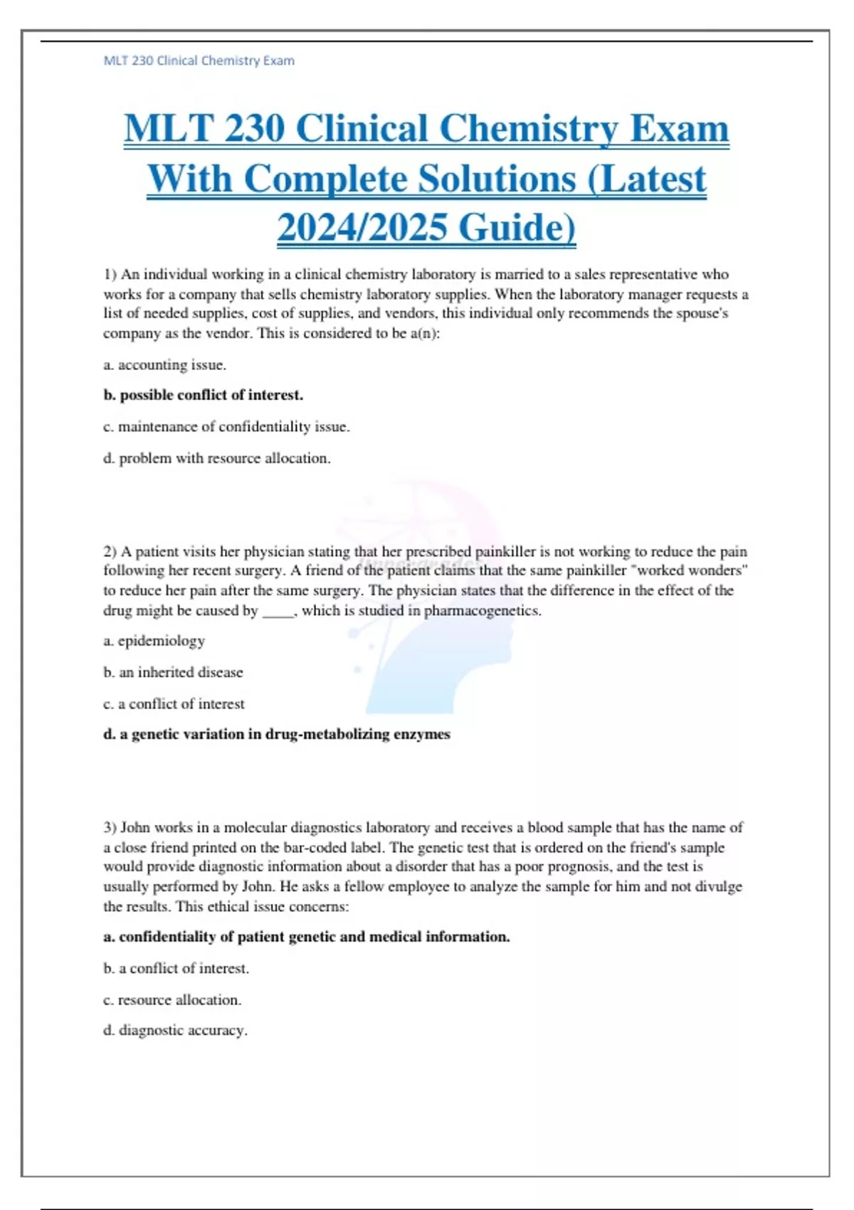 MLT 230 Clinical Chemistry Exam With Complete Solutions (Latest 2024/2025 Guide),MLT 230 Clinical Chemistry Exam With Complete Solutions (Latest 2024/2025 Guide),MLT 230 Clinical Chemistry Exam With Complete Solutions (Latest 2024/2025 Guide),MLT 230 Clinical Chemistry Exam With Complete Solutions (Latest 2024/2025 Guide)