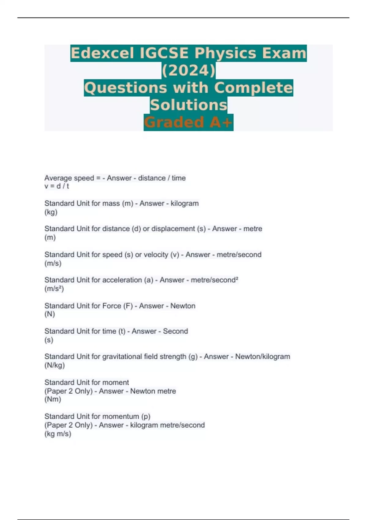 Edexcel IGCSE Physics Exam (2024) Questions with Complete Solutions Graded A+
