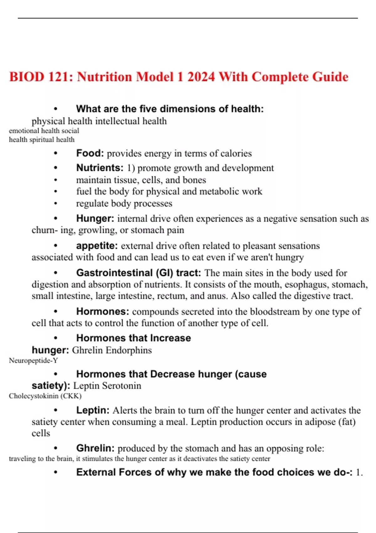BIOD 121: Nutrition Model 1 2024 With Complete Guide Graded A+