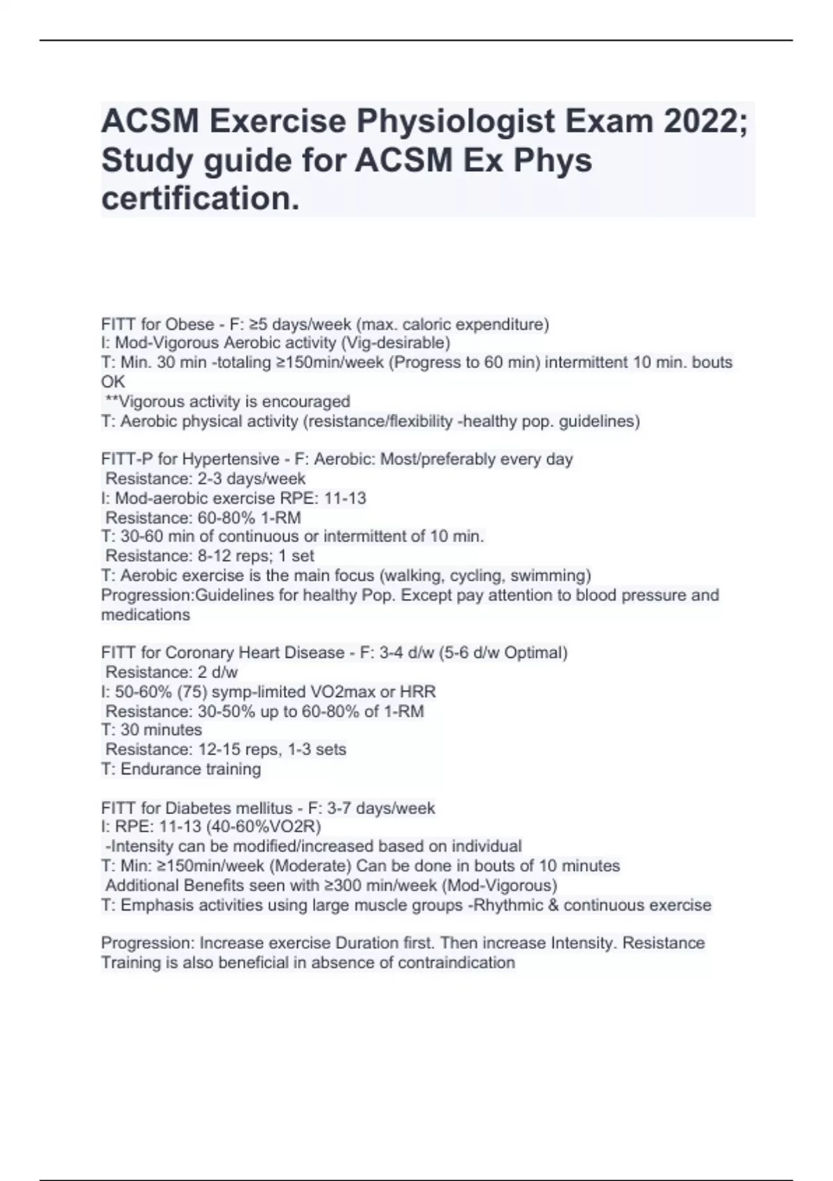 ACSM Exercise Physiologist Exam Latest Update Frequently Tested Questions and Answers Complete