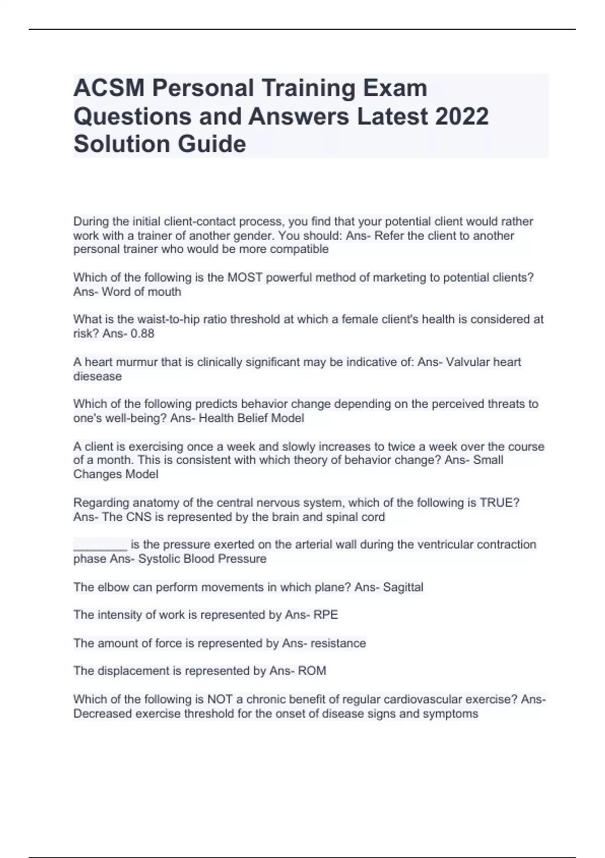 ACSM Personal Training Exam Questions and Answers Latest 2024 Solution Guide