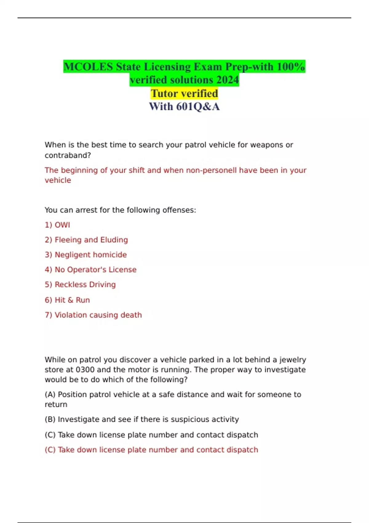 MCOLES State Licensing Exam Prep-with 100% verified solutions 2024