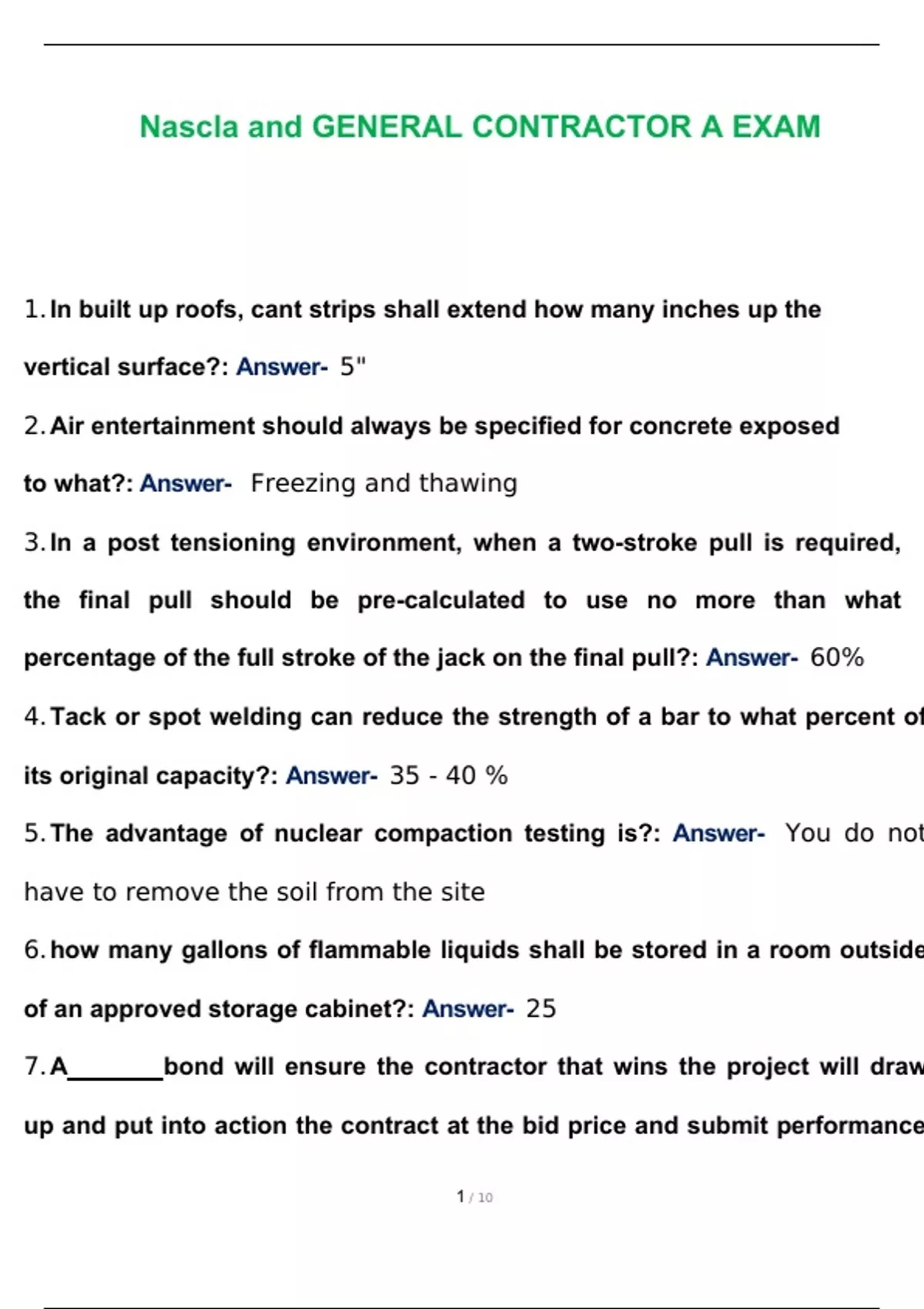 Nascla and GENERAL CONTRACTOR A Exam Questions with 100% Correct Answers