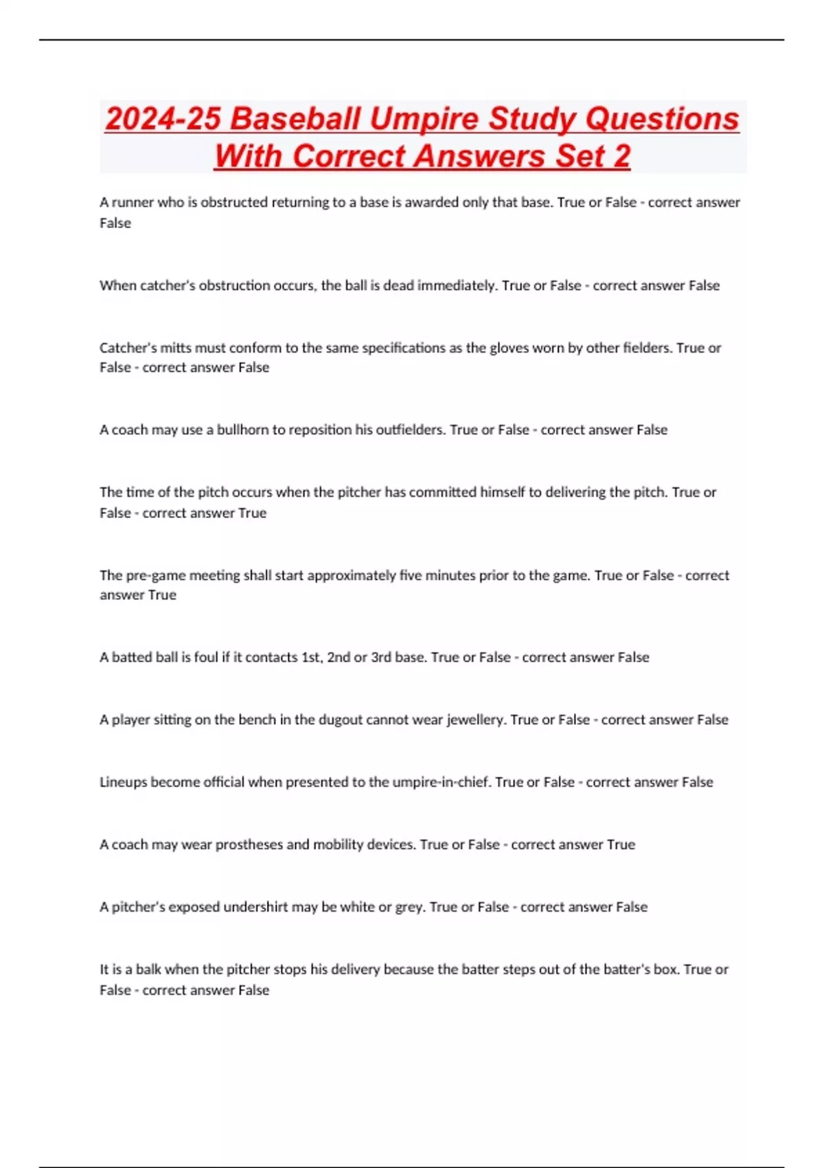 Baseball Umpire 2024 Exam Sample With Correct Answers