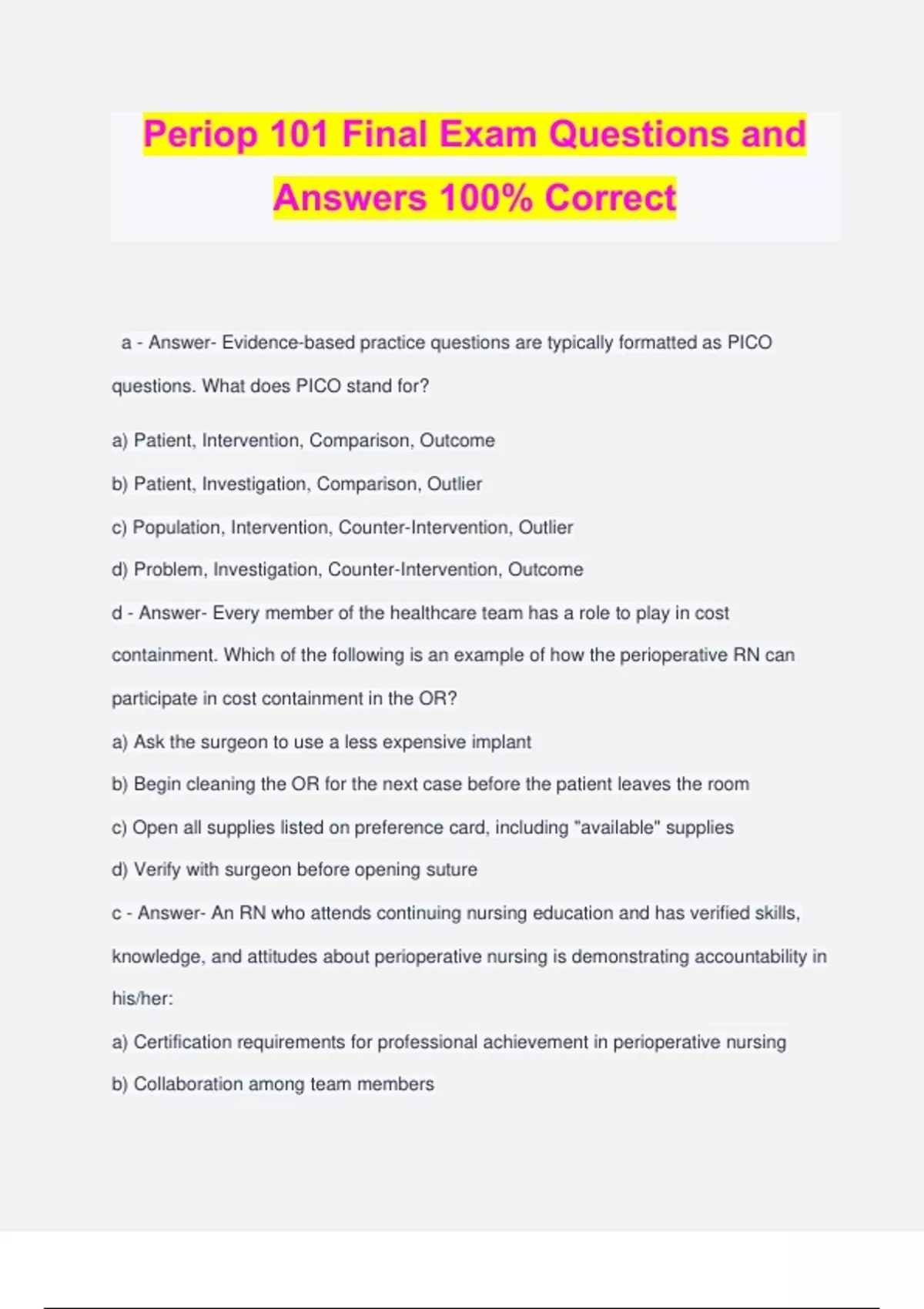 Periop 101 Final Exam Questions and Answers 100% Correct