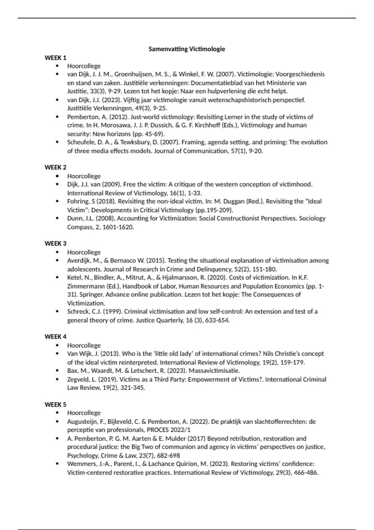 Samenvatting Victimologie 2023/2024 (hoorcolleges + artikelen)