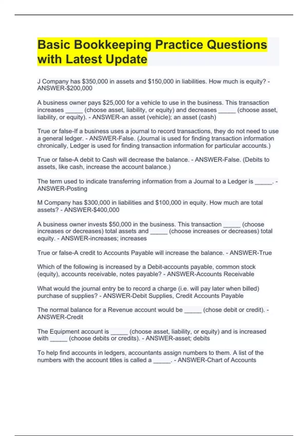 True or false-A debit to Cash will decrease the balance. - ANSWER-False. (Debits to