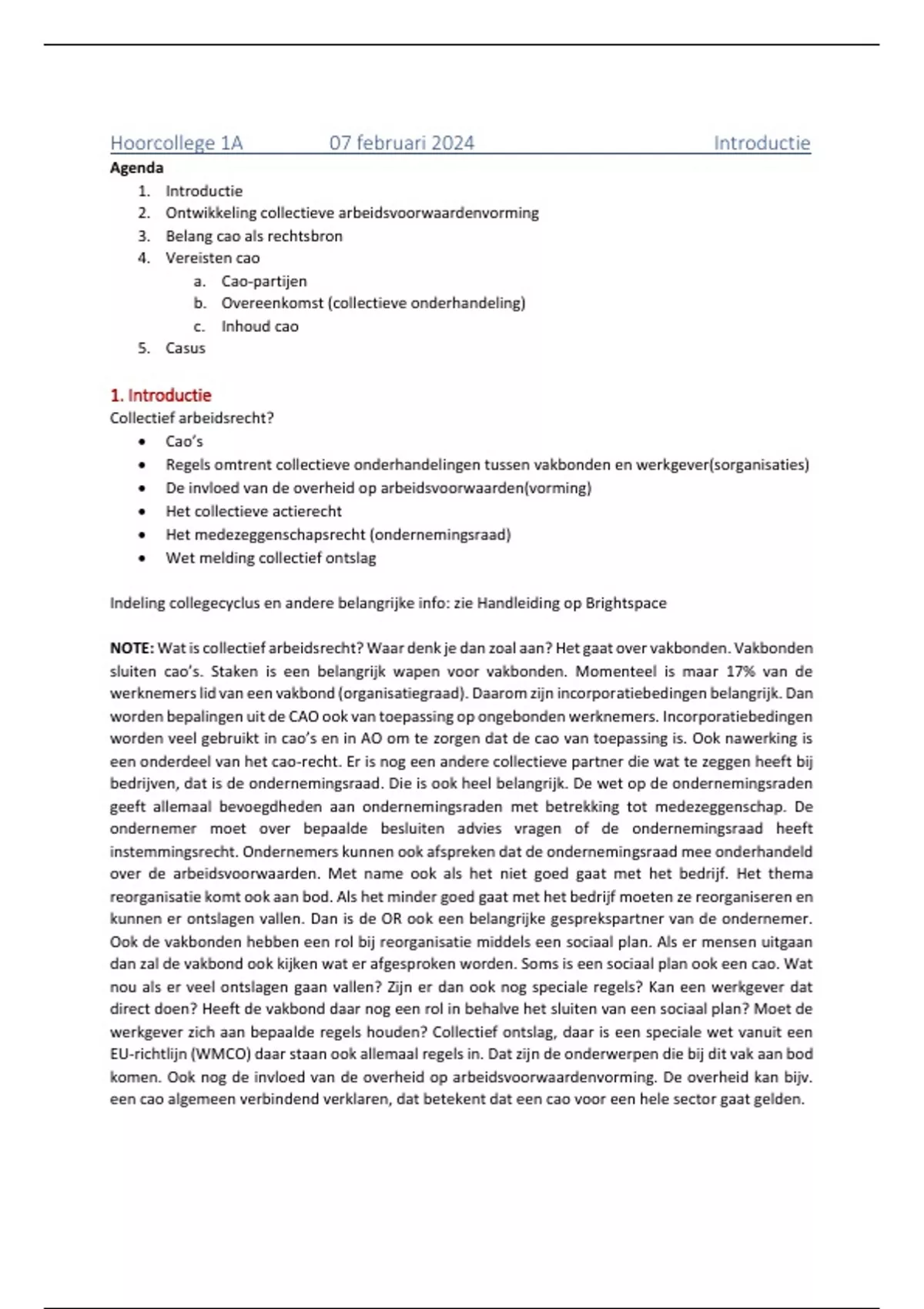 Dit zijn de volledig uitgeschreven hoorcollege aantekeningen van alle hoorcolleges voor het vak collectief arbeidsrecht. Alles is zo goed als mogelijk weergegeven en enorm uitgebreid.