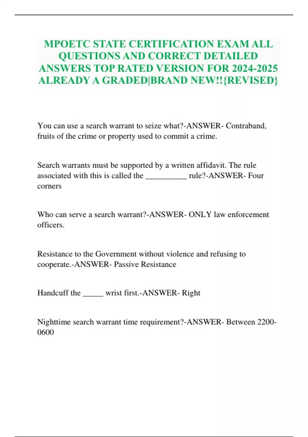 MPOETC STATE CERTIFICATION EXAM ALL QUESTIONS AND CORRECT DETAILED ANSWERS TOP RATED VERSION FOR ALREADY A GRADED|BRAND NEW!!{REVISED}