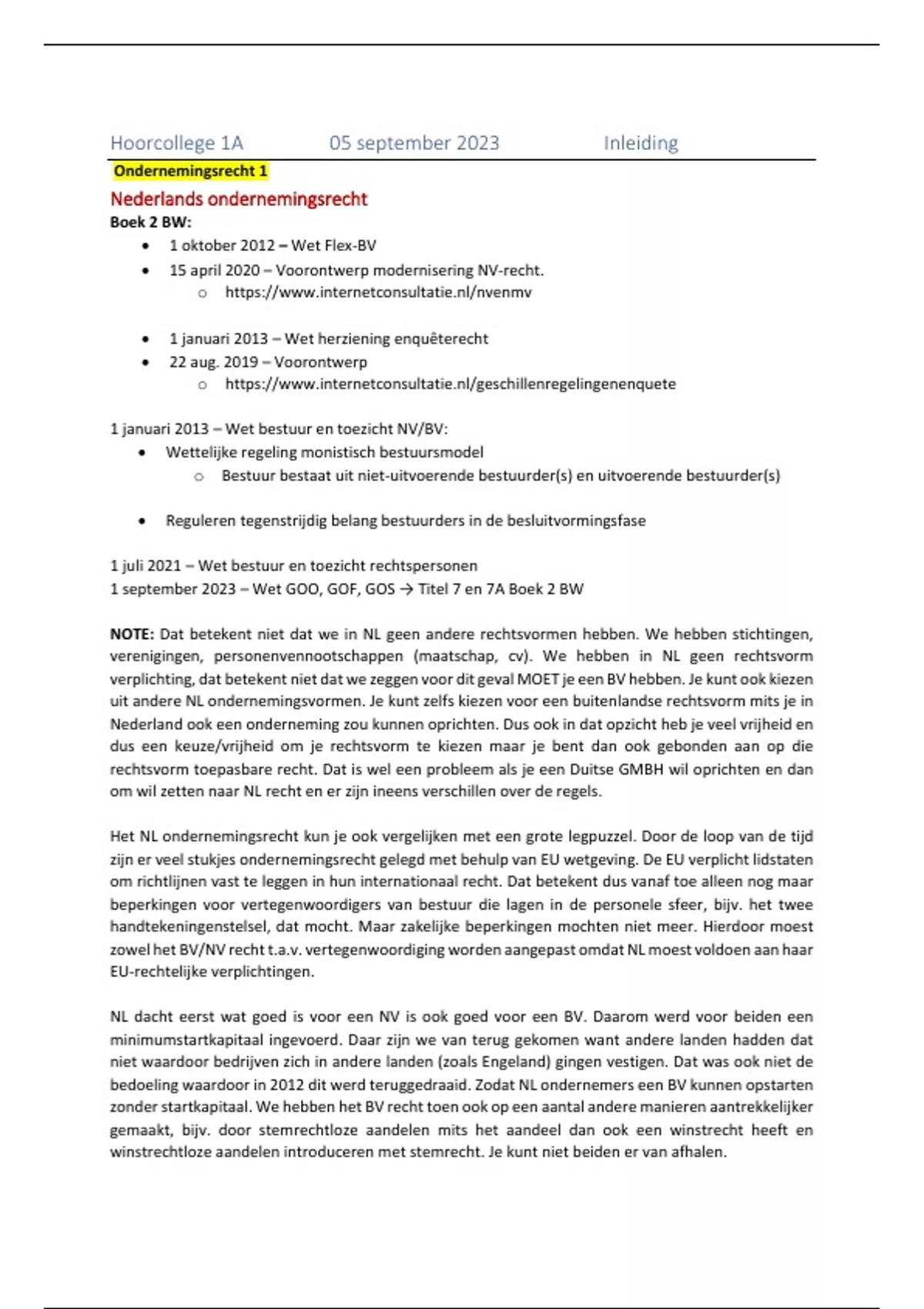 NOTE: Hoe krijgen we de beschikking over BV/NV? Hoe richt je een BV/NV op? Het enige constitutieve
