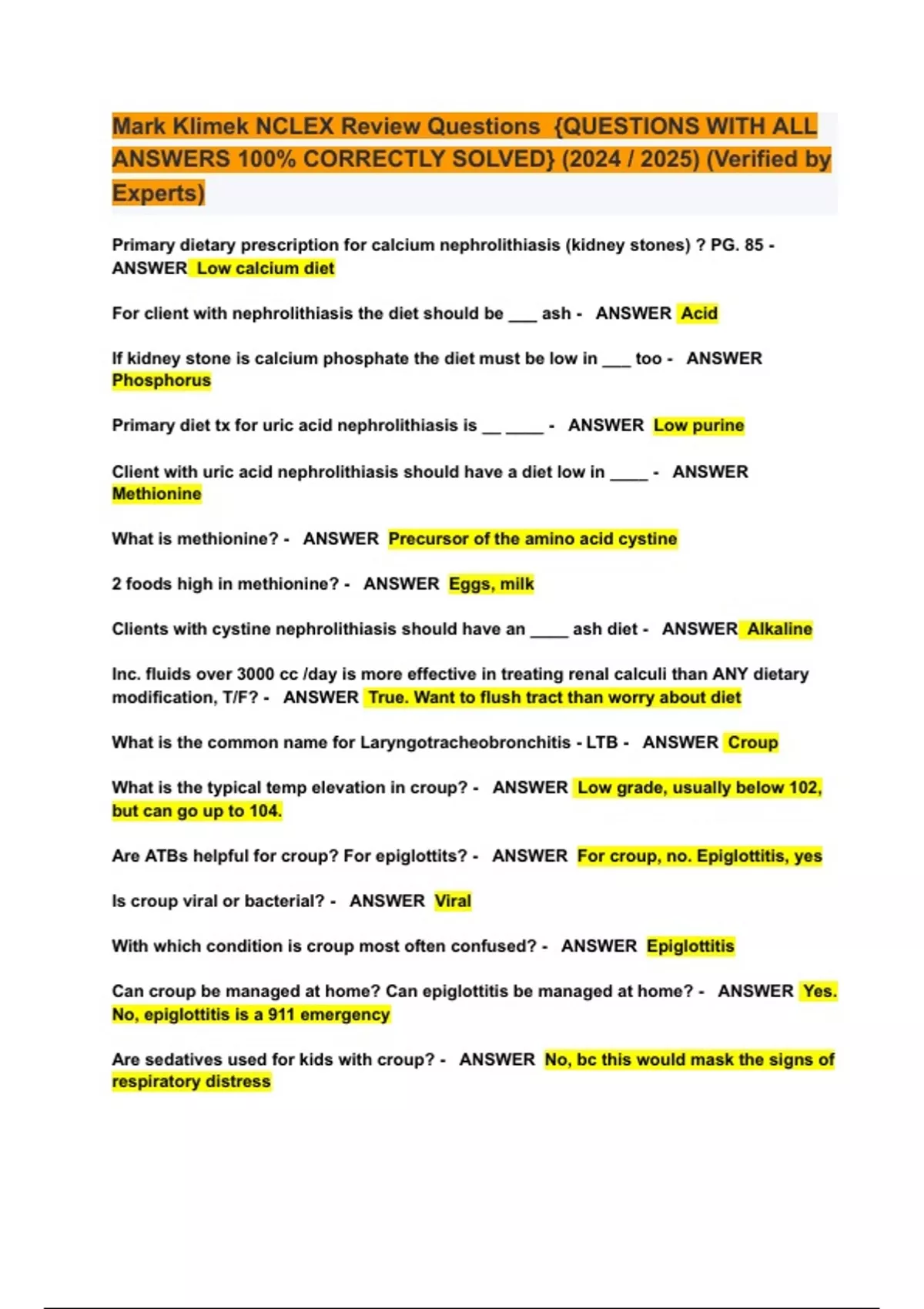 Mark Klimek NCLEX Review Questions {QUESTIONS WITH ALL ANSWERS 100% CORRECTLY SOLVED} (2024 / 2025) (Verified by Experts)