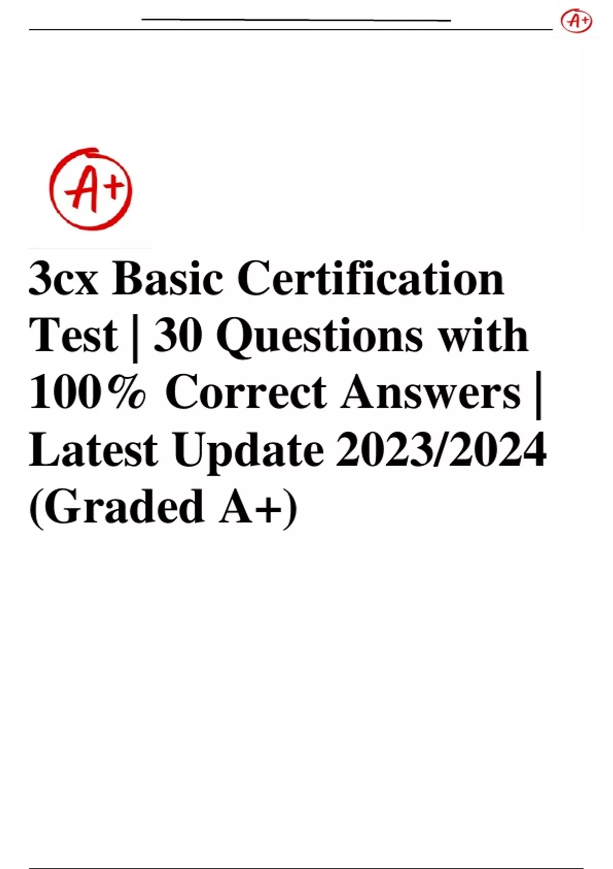 3cx Basic Certification Test | 30 Questions with 100% Correct Answers | Latest Update 2023/2024 (Graded A+)