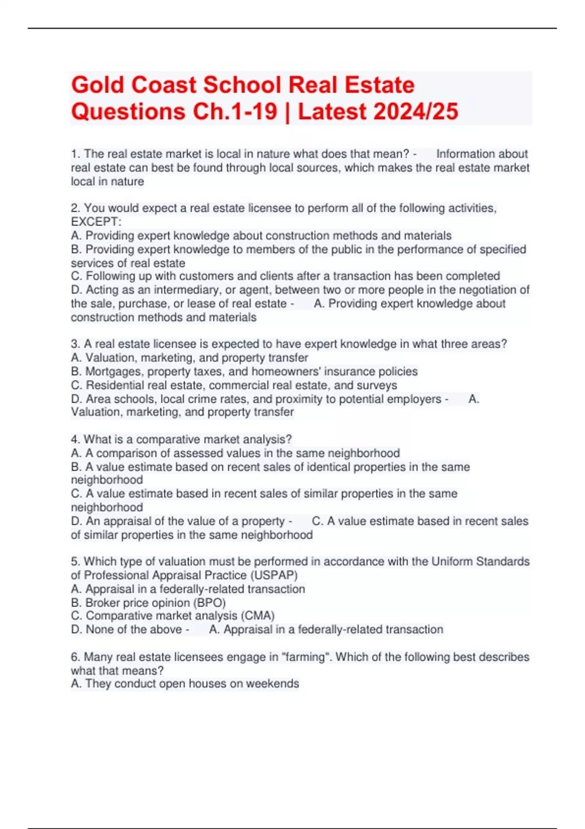 Gold Coast School Real Estate Questions Ch.1-19 | Latest 2024/25