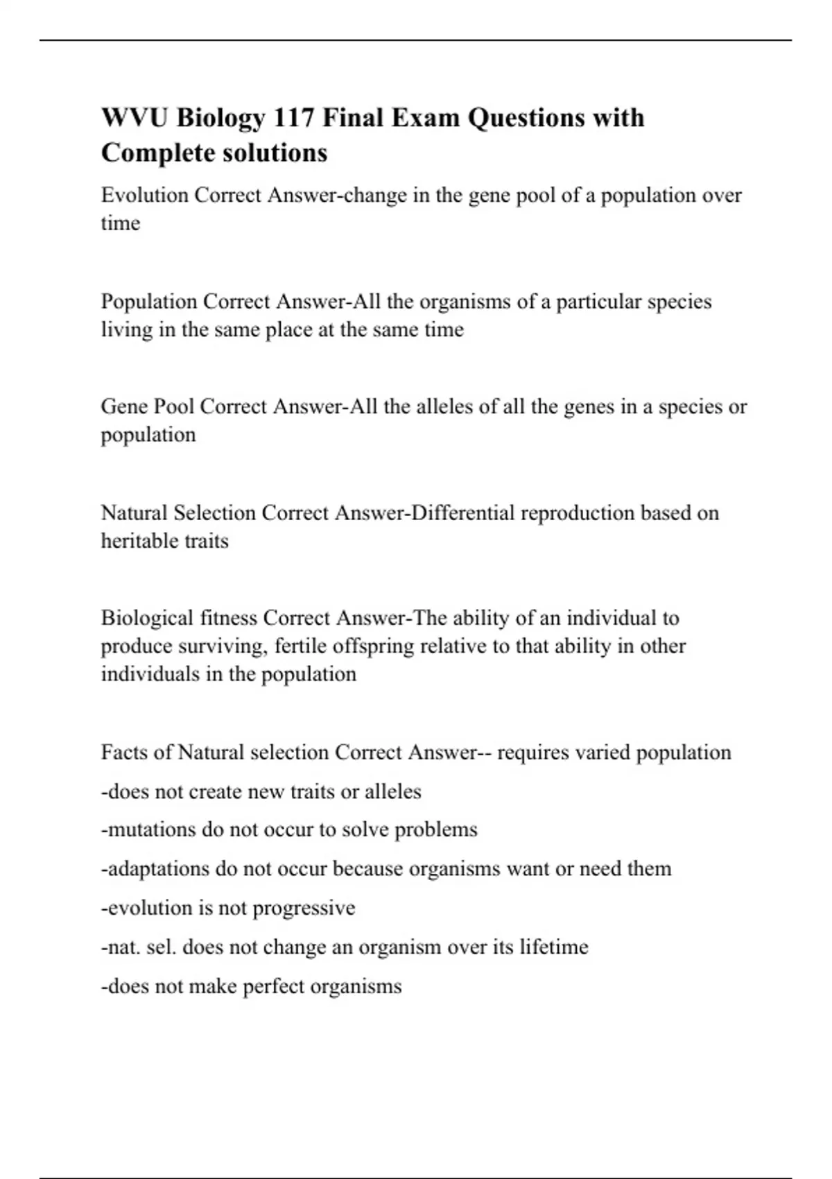 WVU Biology 117 Final Exam Questions with Complete solutions.