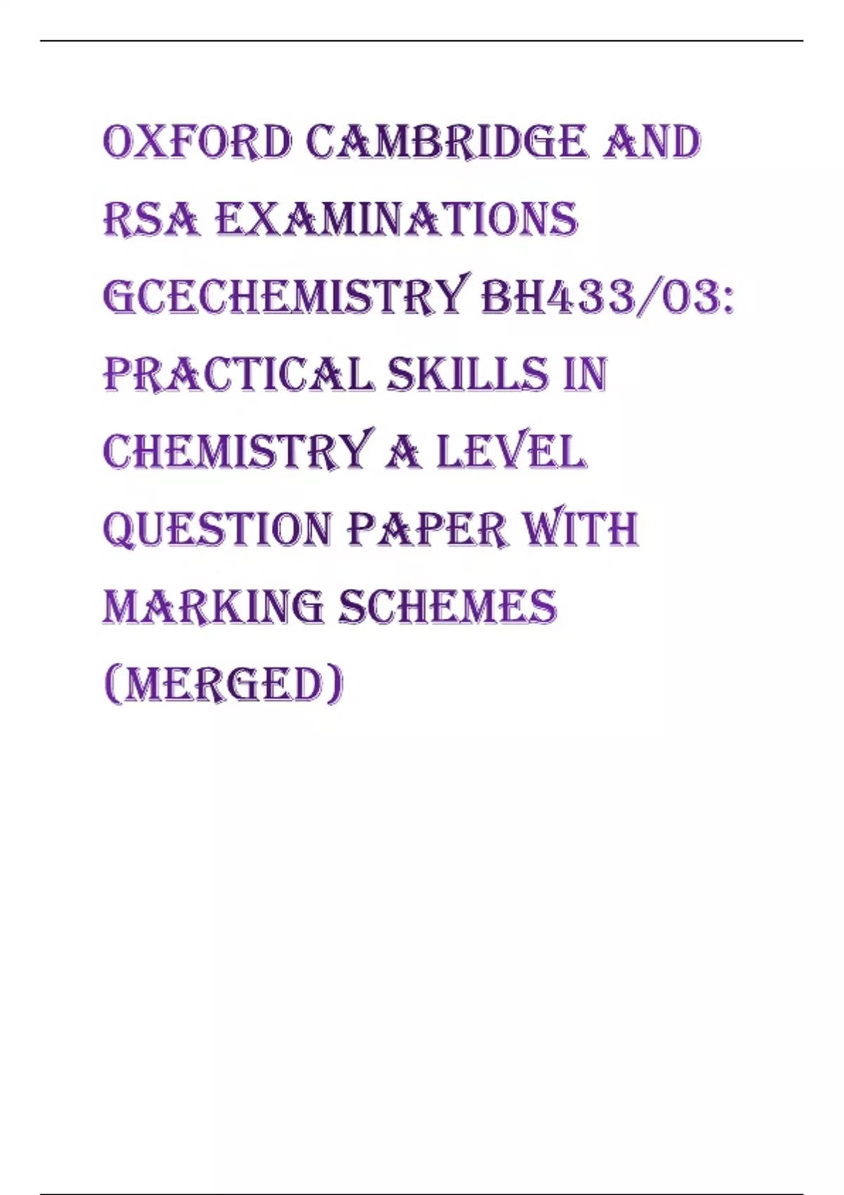 Oxford Cambridge and RSA Examinations GCEChemistry BH433/03: Practical skills in chemistry A Level question paper with marking schemes (merged)