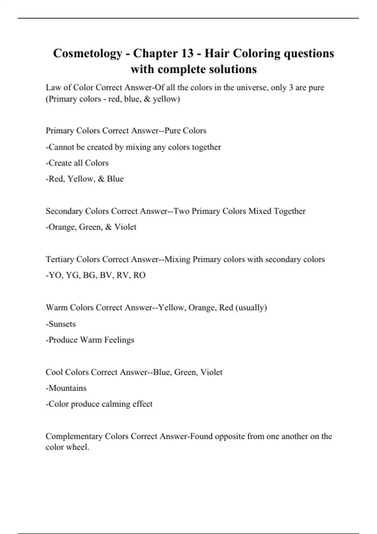 Cosmetology - Chapter 13 - Hair Coloring questions with complete solutions