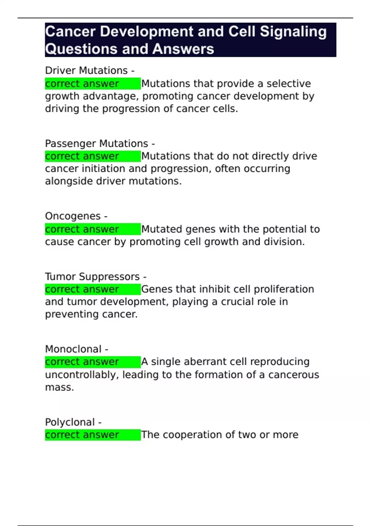 Cancer Development and Cell Signaling Questions and Answers