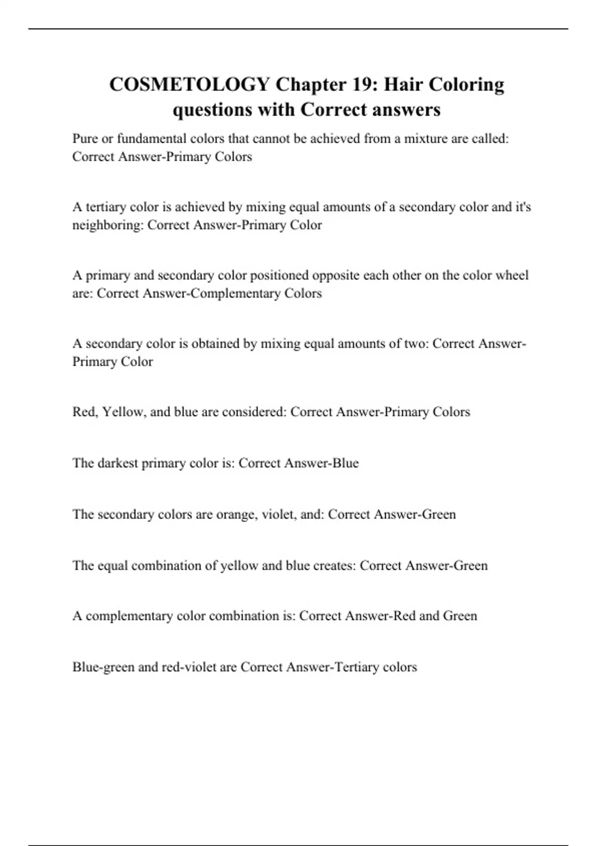 COSMETOLOGY Chapter 19: Hair Coloring questions with Correct answers
