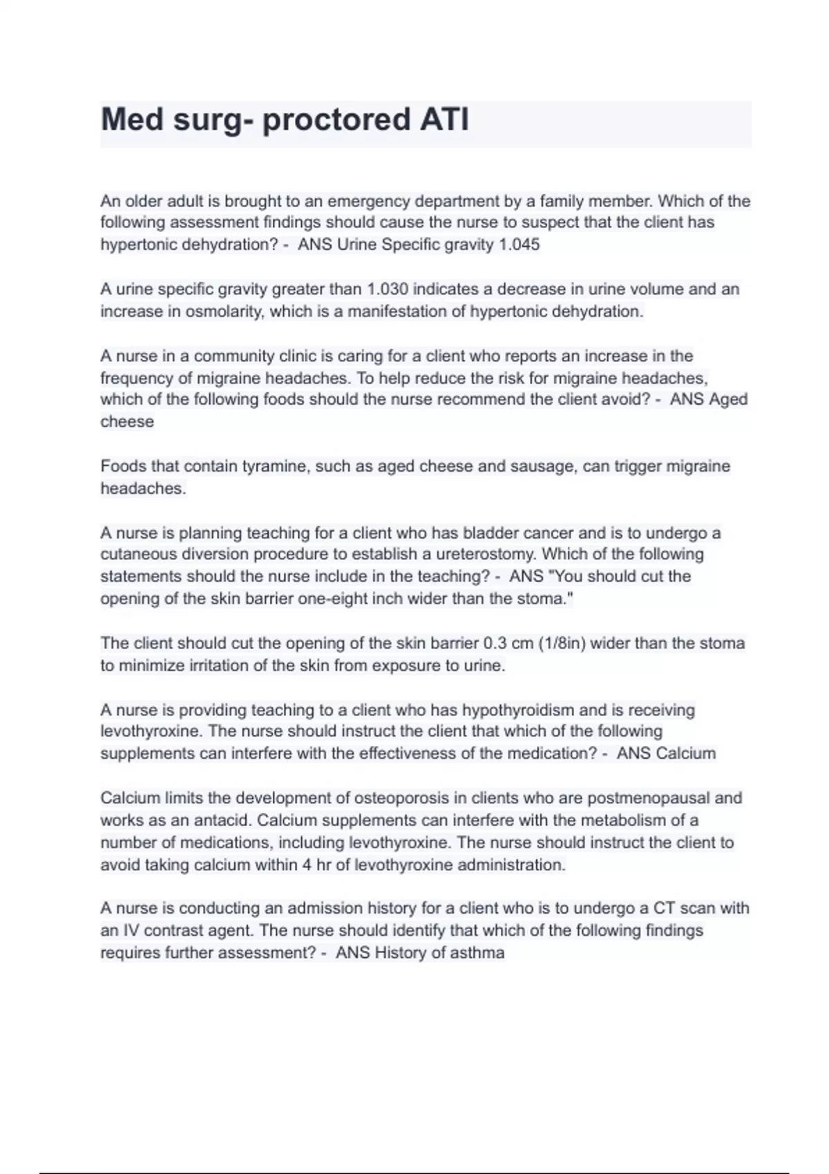 Med surg- proctored ATI Exam with Questions And 100% Verified Answers