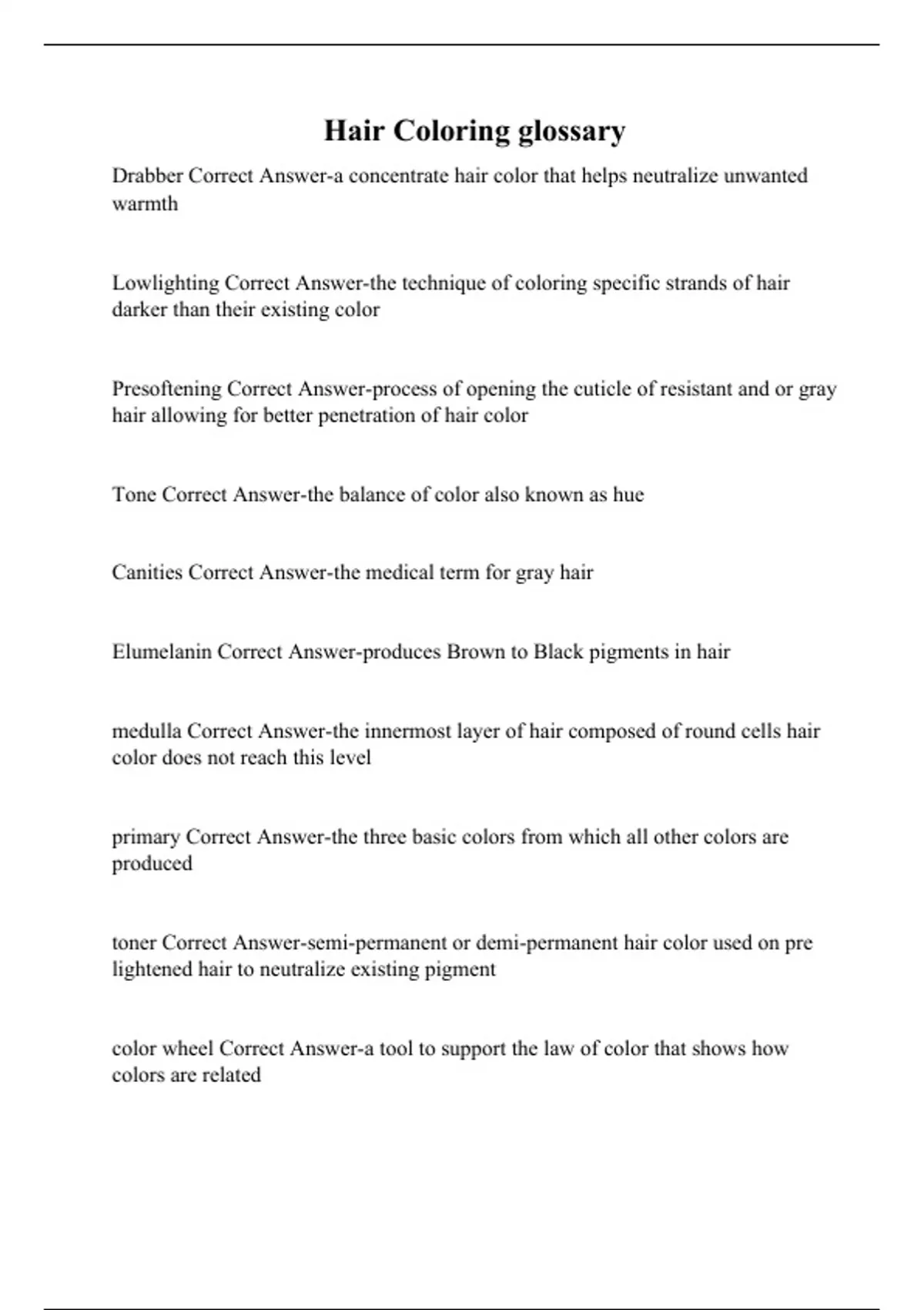 Hair Coloring glossary