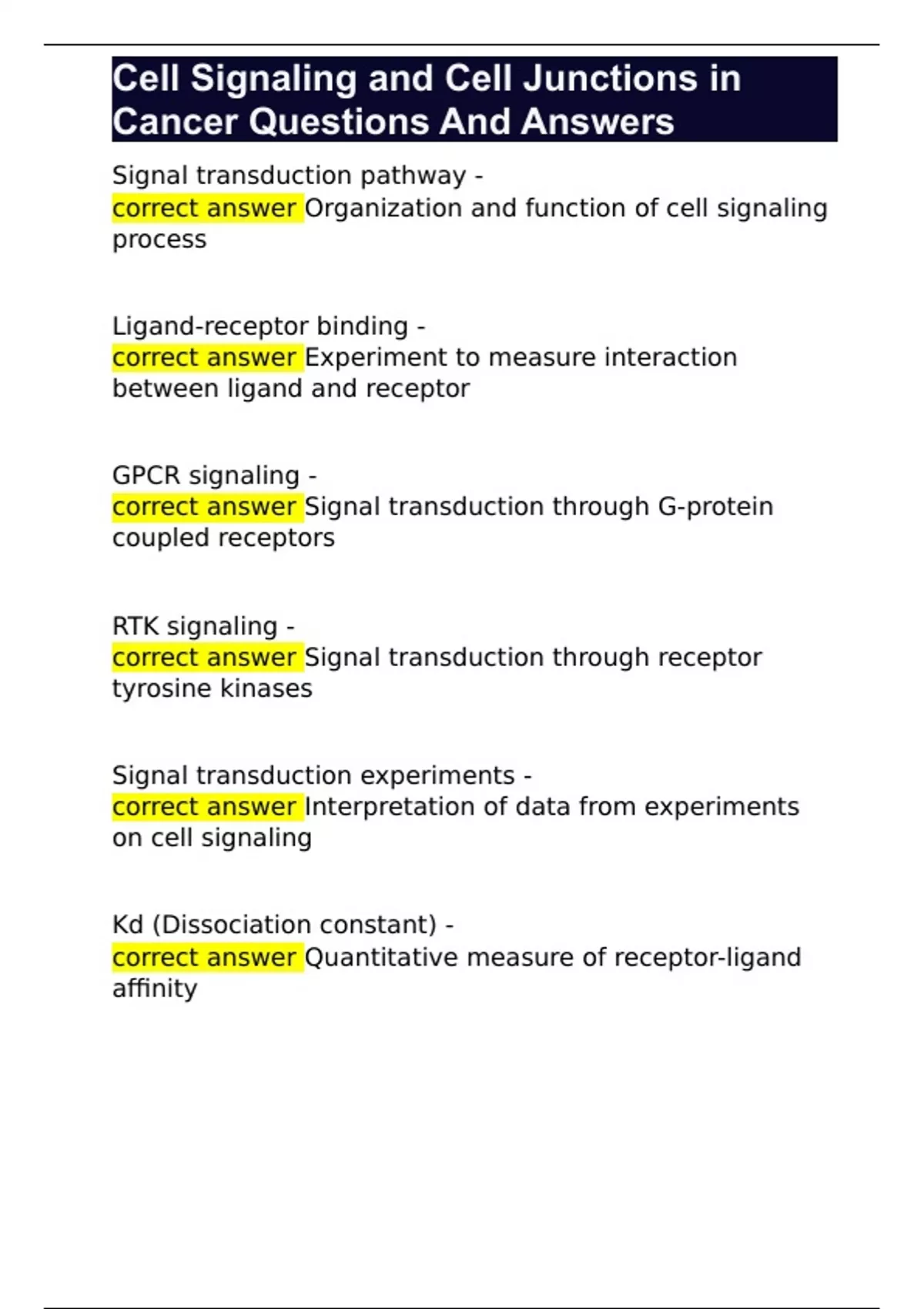Cell Signaling and Cell Junctions in Cancer Questions And Answers