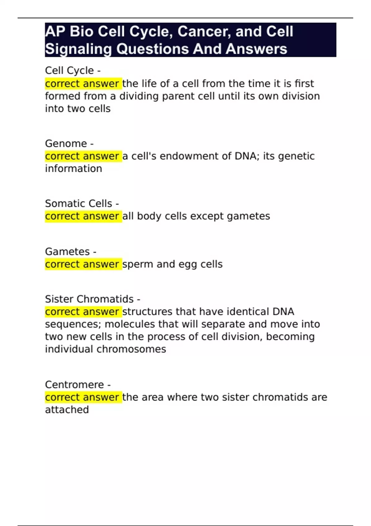 AP Bio Cell Cycle, Cancer, and Cell Signaling Questions And Answers