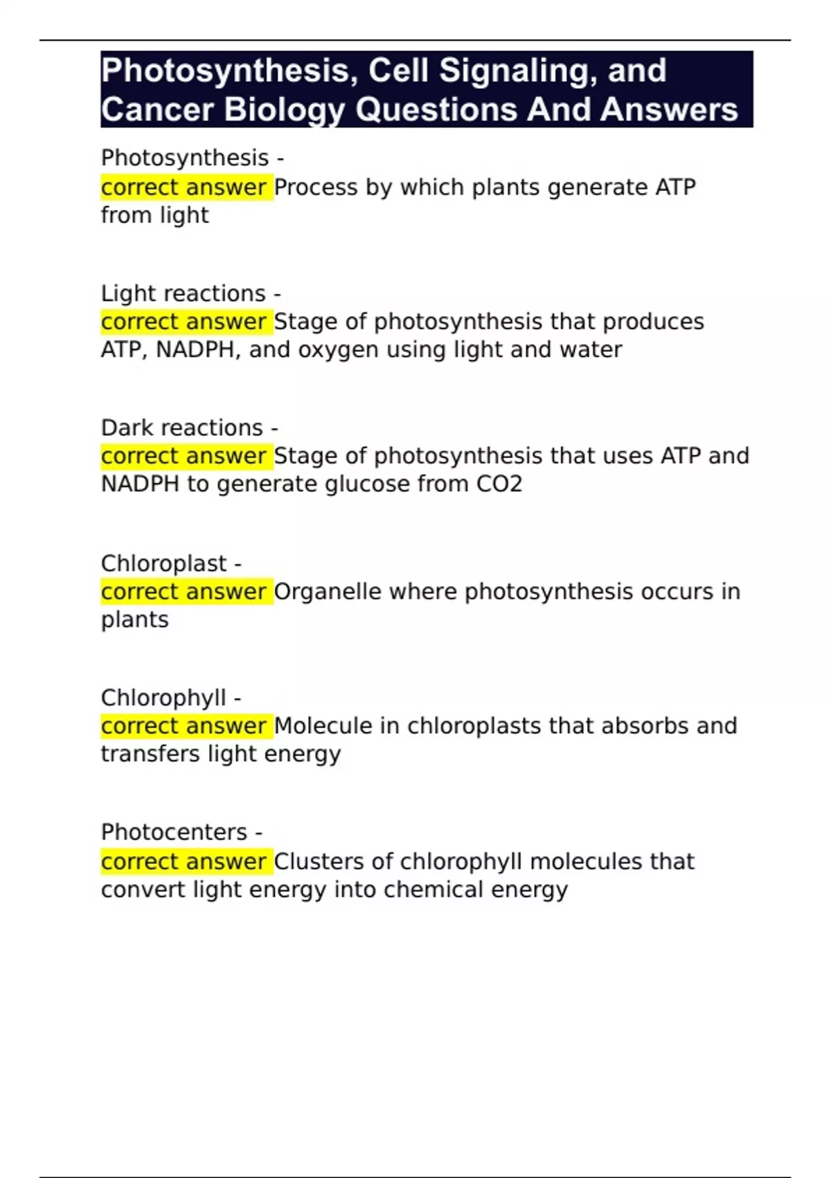 Photosynthesis, Cell Signaling, and Cancer Biology Questions And Answers