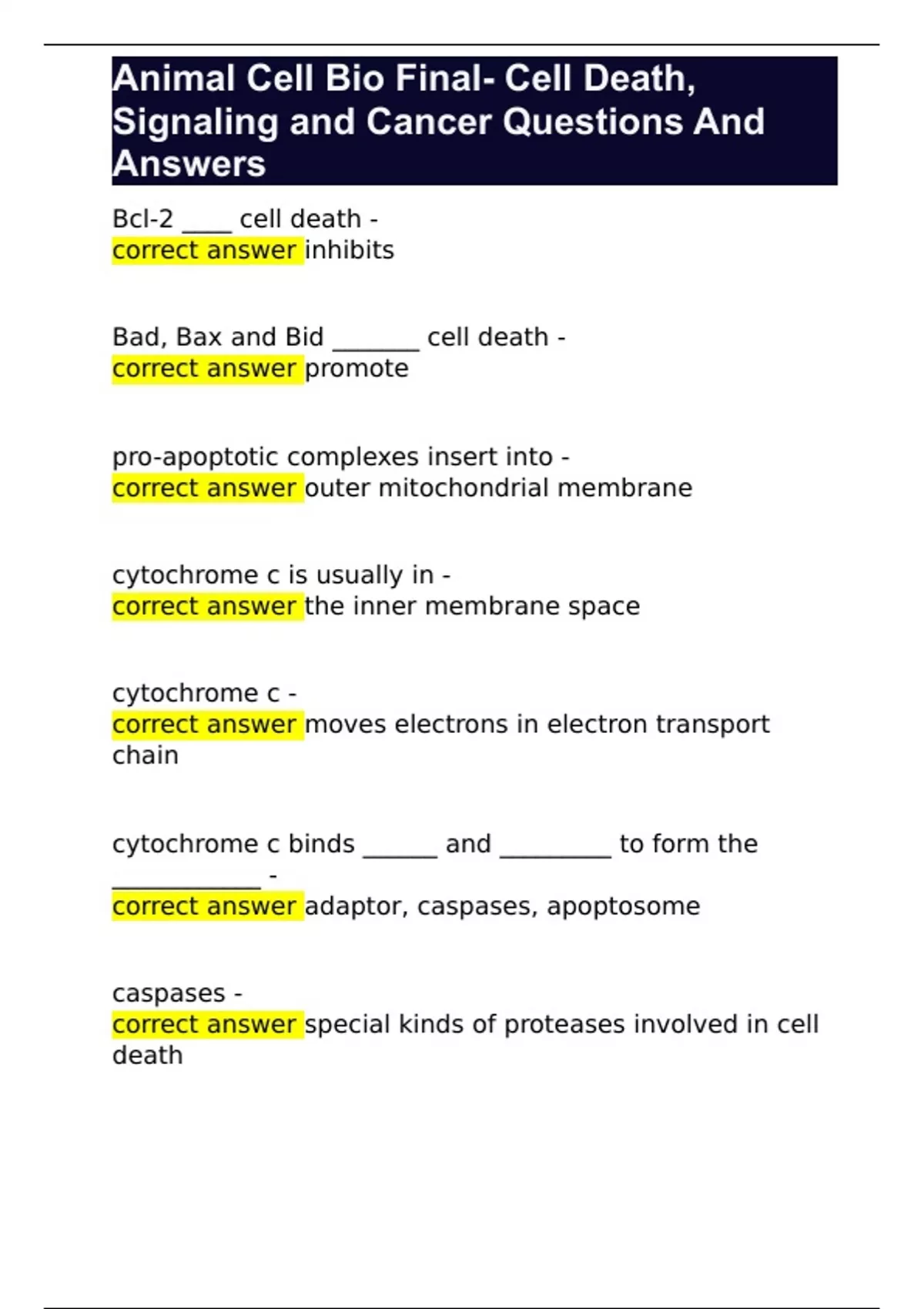 Animal Cell Bio Final- Cell Death, Signaling and Cancer Questions And Answers