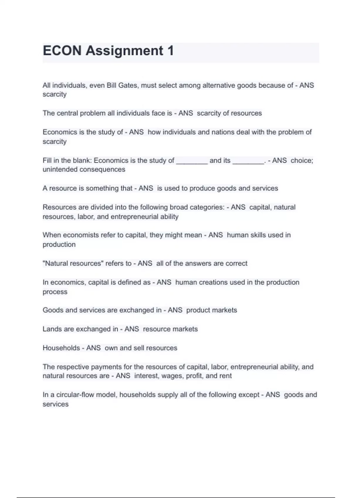 ECON Assignment 1 Exams with Questions And 100% Verified Answers