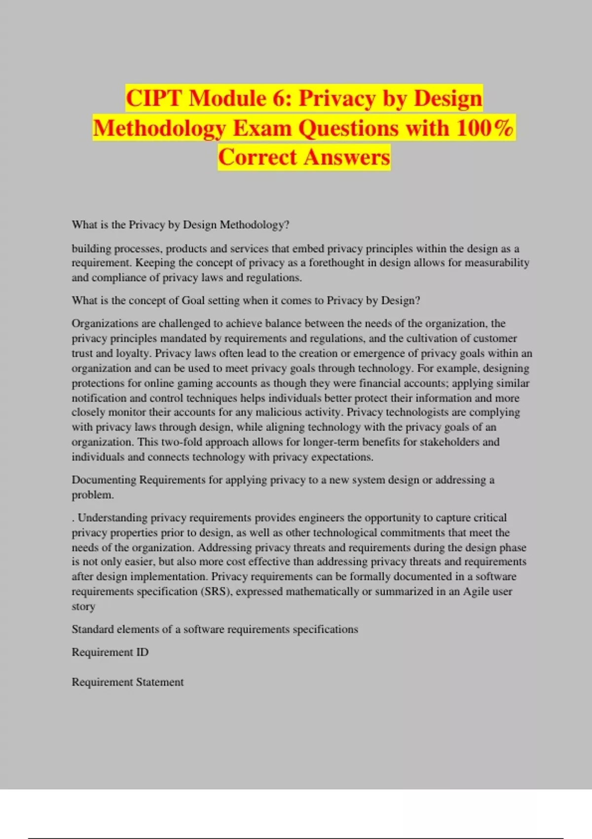 CIPT Module 6: Privacy by Design Methodology Exam Questions with 100% Correct Answers