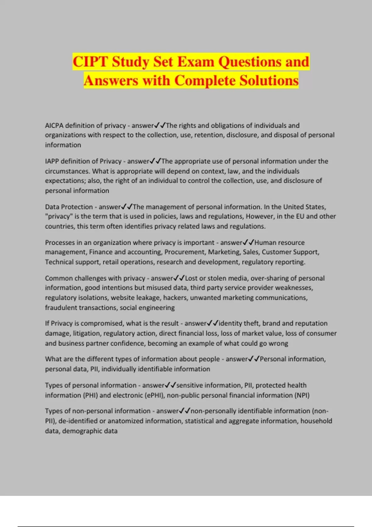 CIPT Study Set Exam Questions and Answers with Complete Solutions