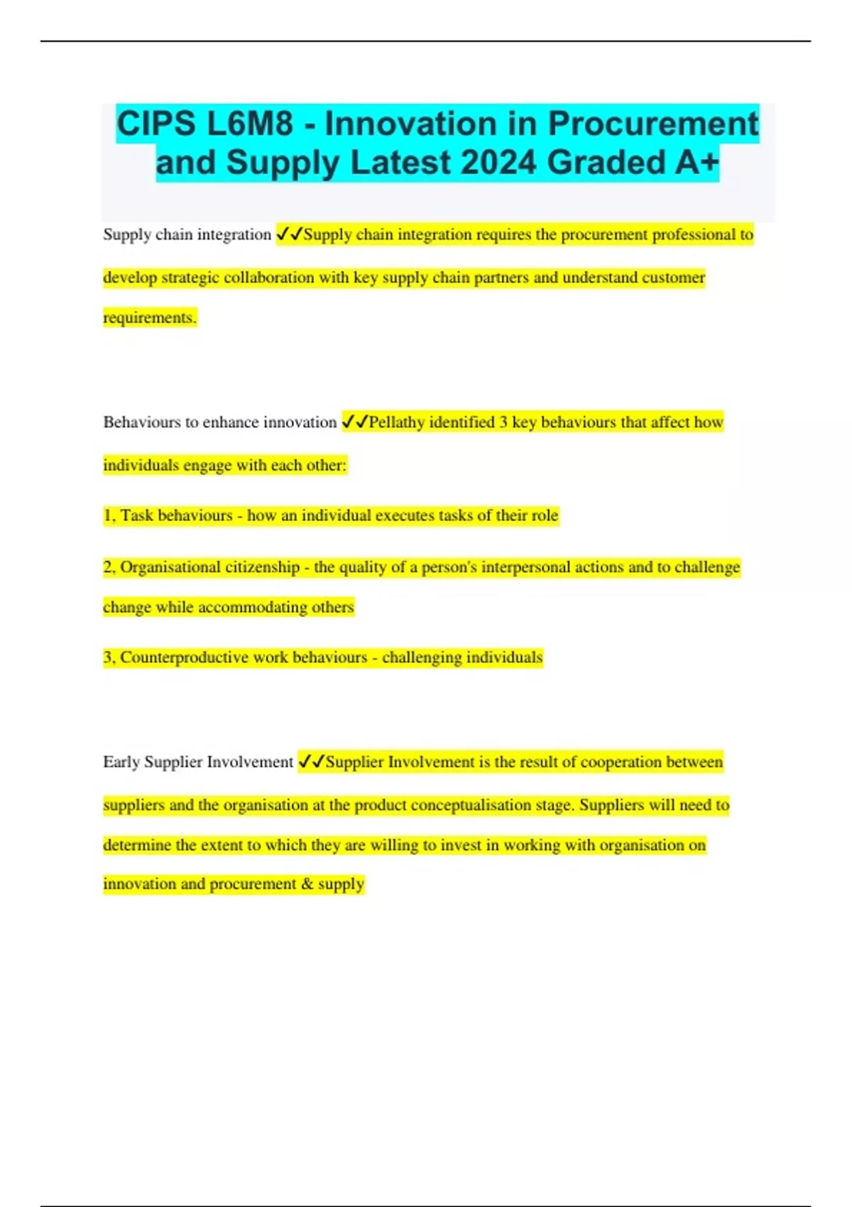 CIPS L6M8 - Innovation in Procurement and Supply Latest 2024 Graded A+