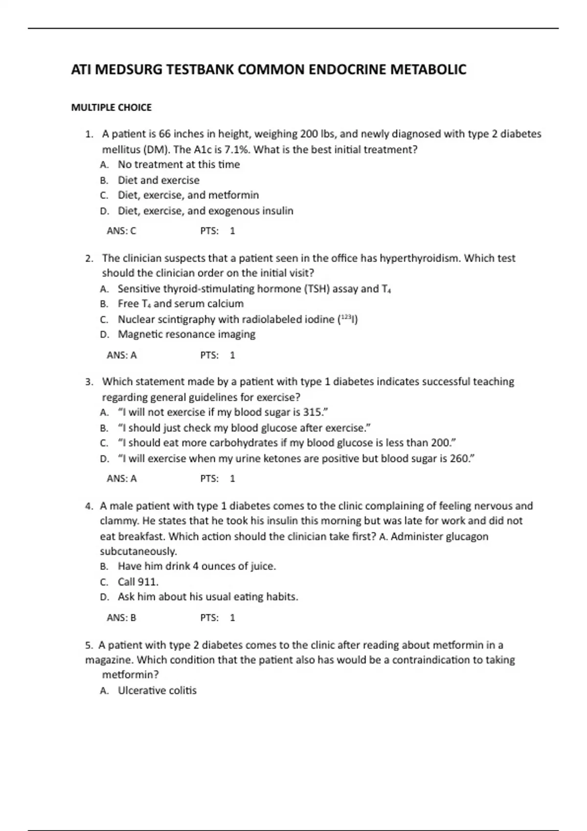 ATI MEDSURG TESTBANK COMMON ENDOCRINE METABOLIC