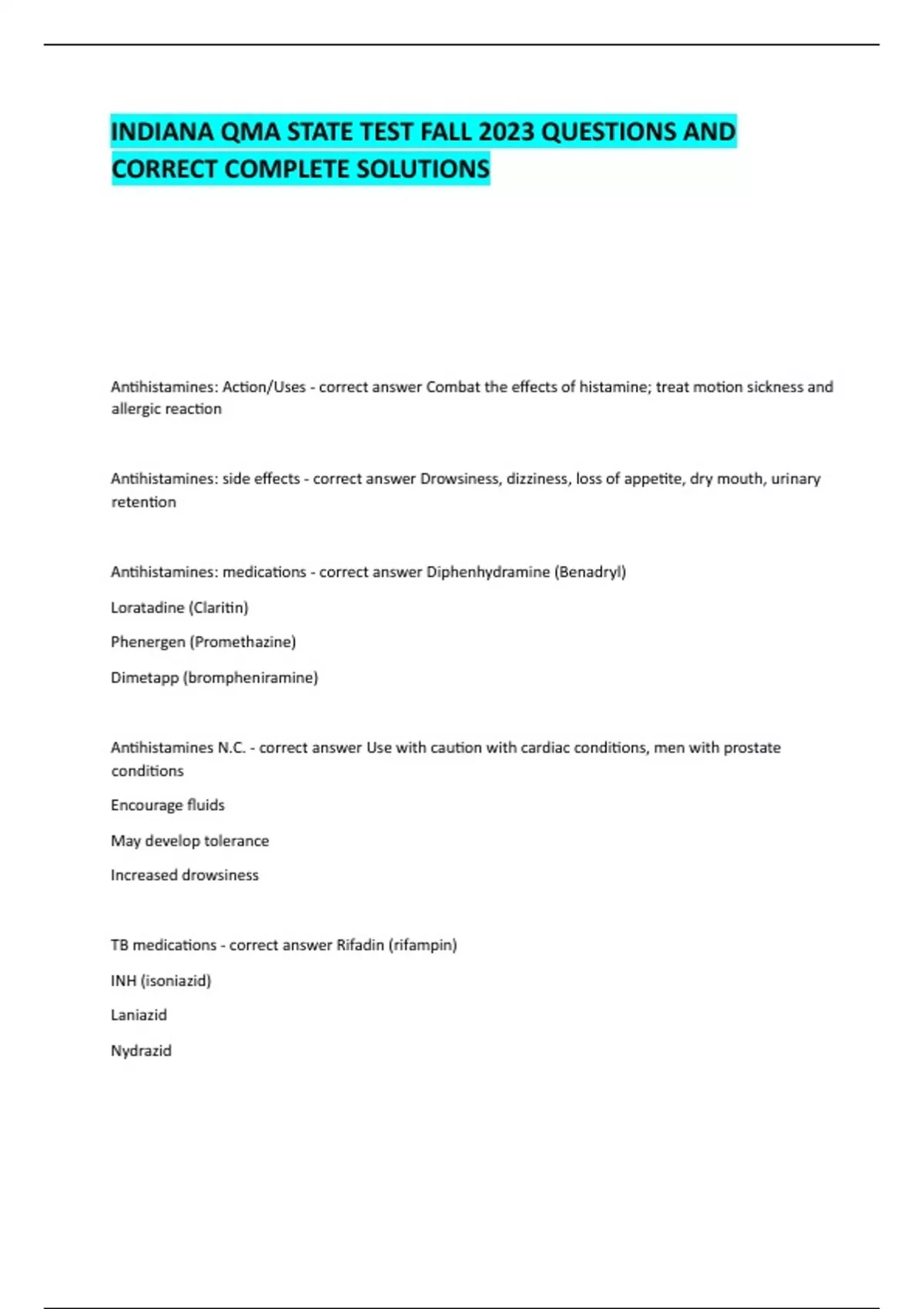INDIANA QMA STATE TEST FALL 2023 QUESTIONS AND CORRECT COMPLETE SOLUTIONS