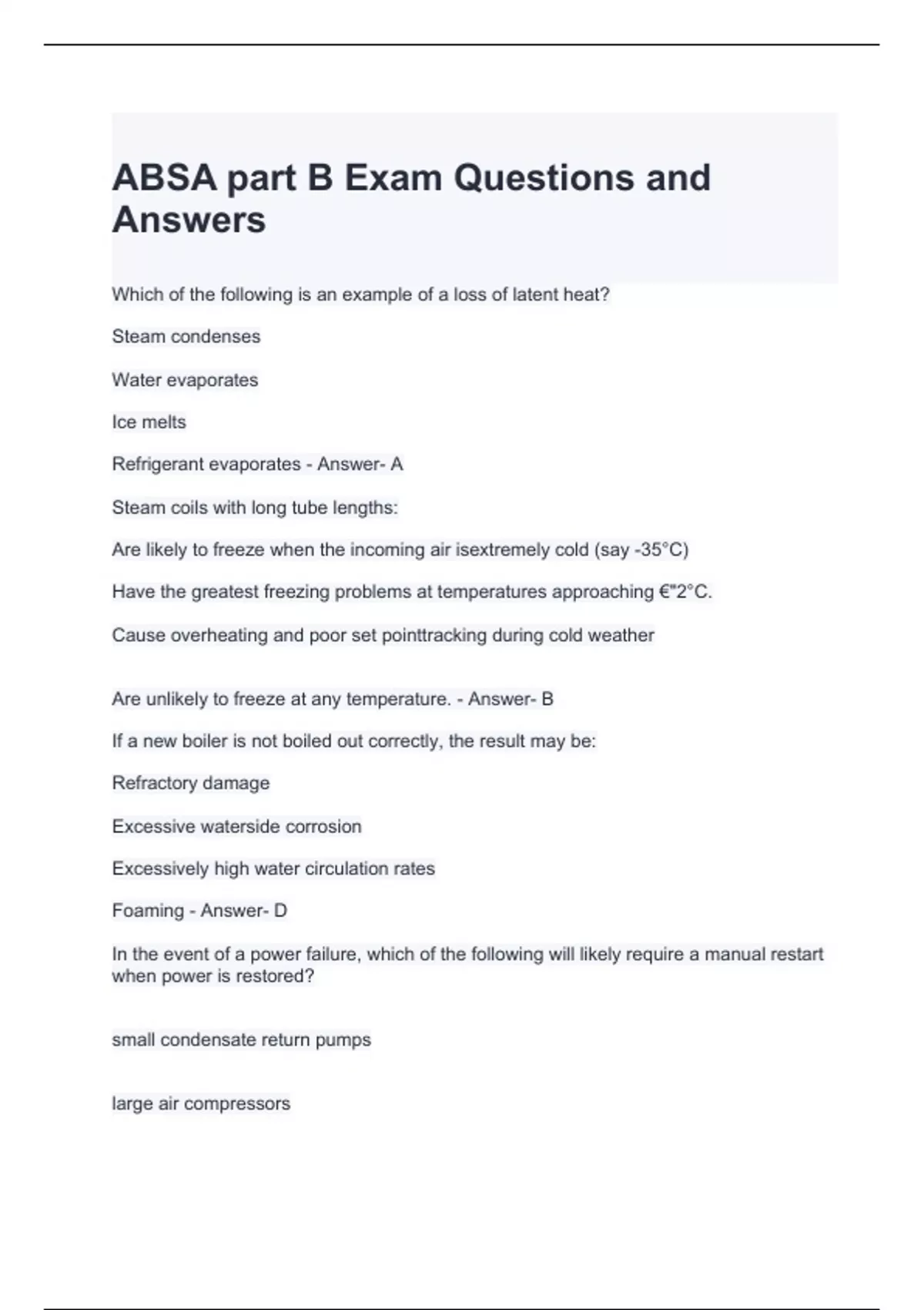 ABSA part B Exam Questions and Answers