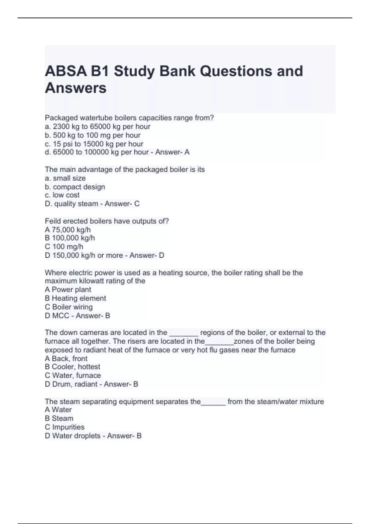 ABSA B1 Study Bank Questions and Answers