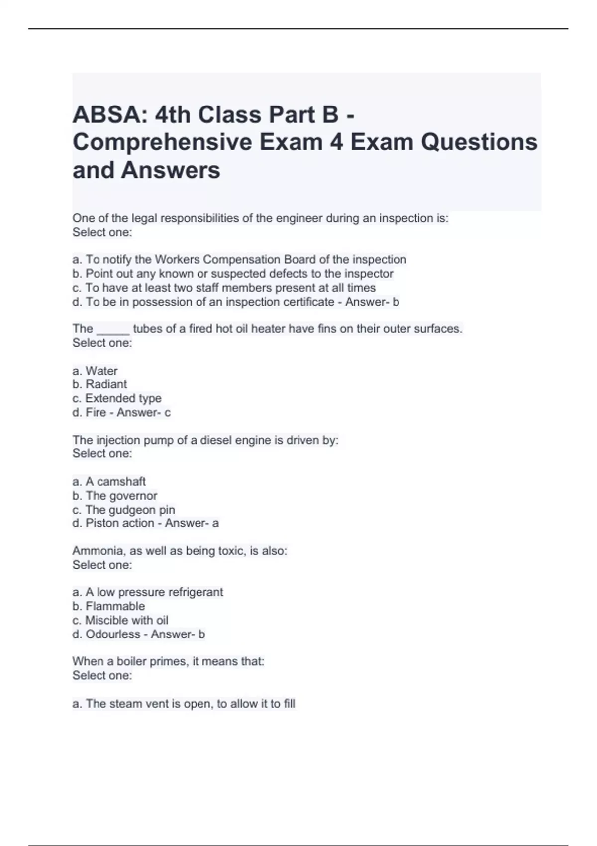 ABSA 4th Class Part B - Comprehensive Exam 4 Exam Questions and Answers