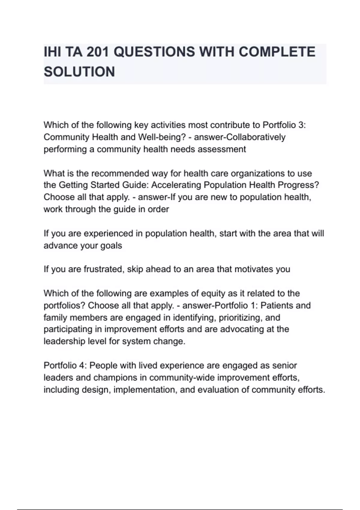 IHI TA 201 QUESTIONS WITH COMPLETE SOLUTION ACCURATE