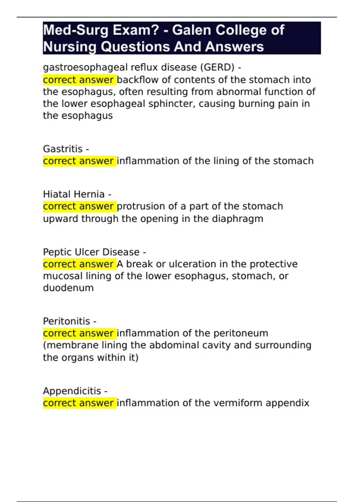 Med-Surg Exam? - Galen College of Nursing Questions And Answers