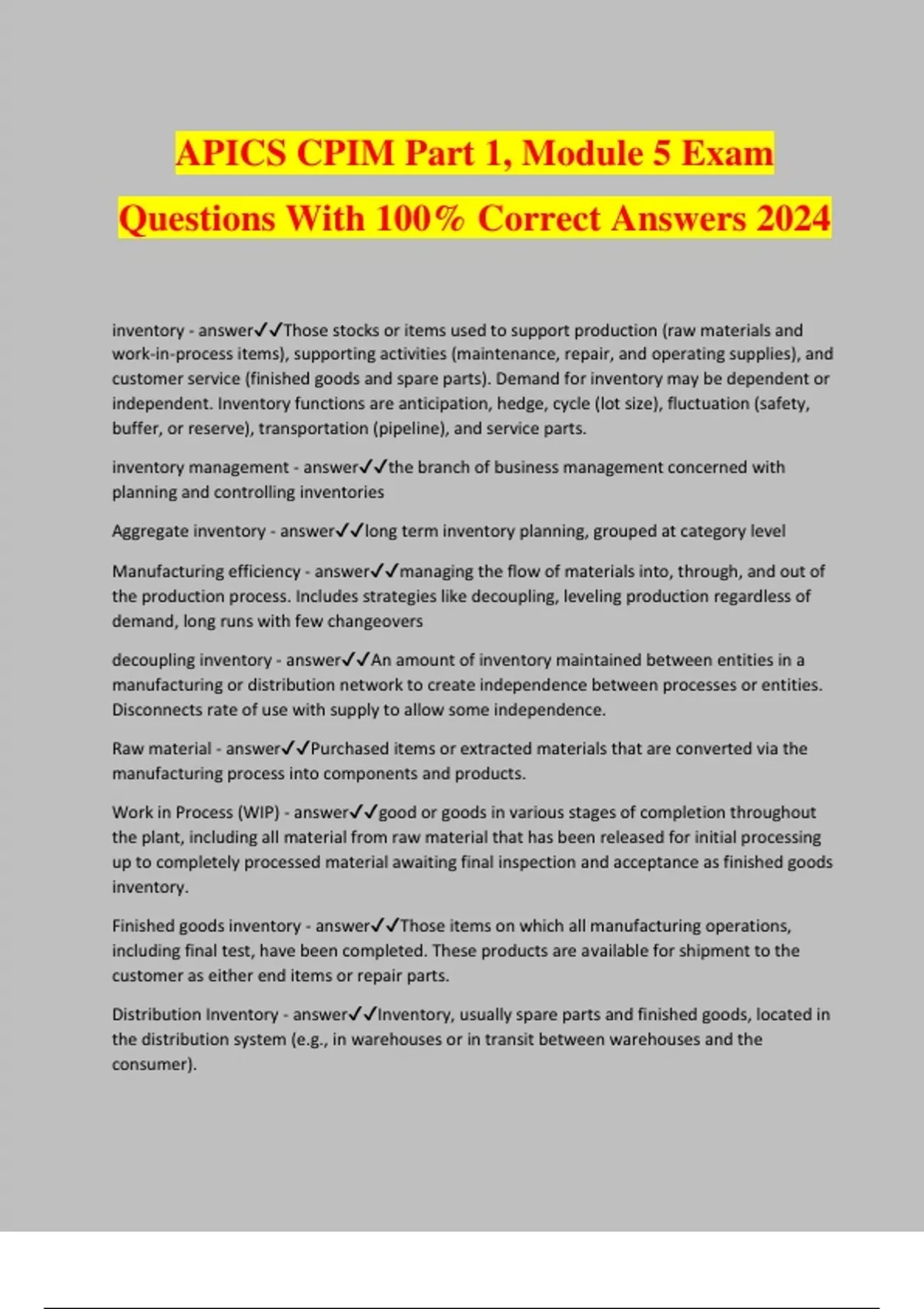 APICS CPIM Part 1, Module 5 Exam Questions With 100% Correct Answers 2024