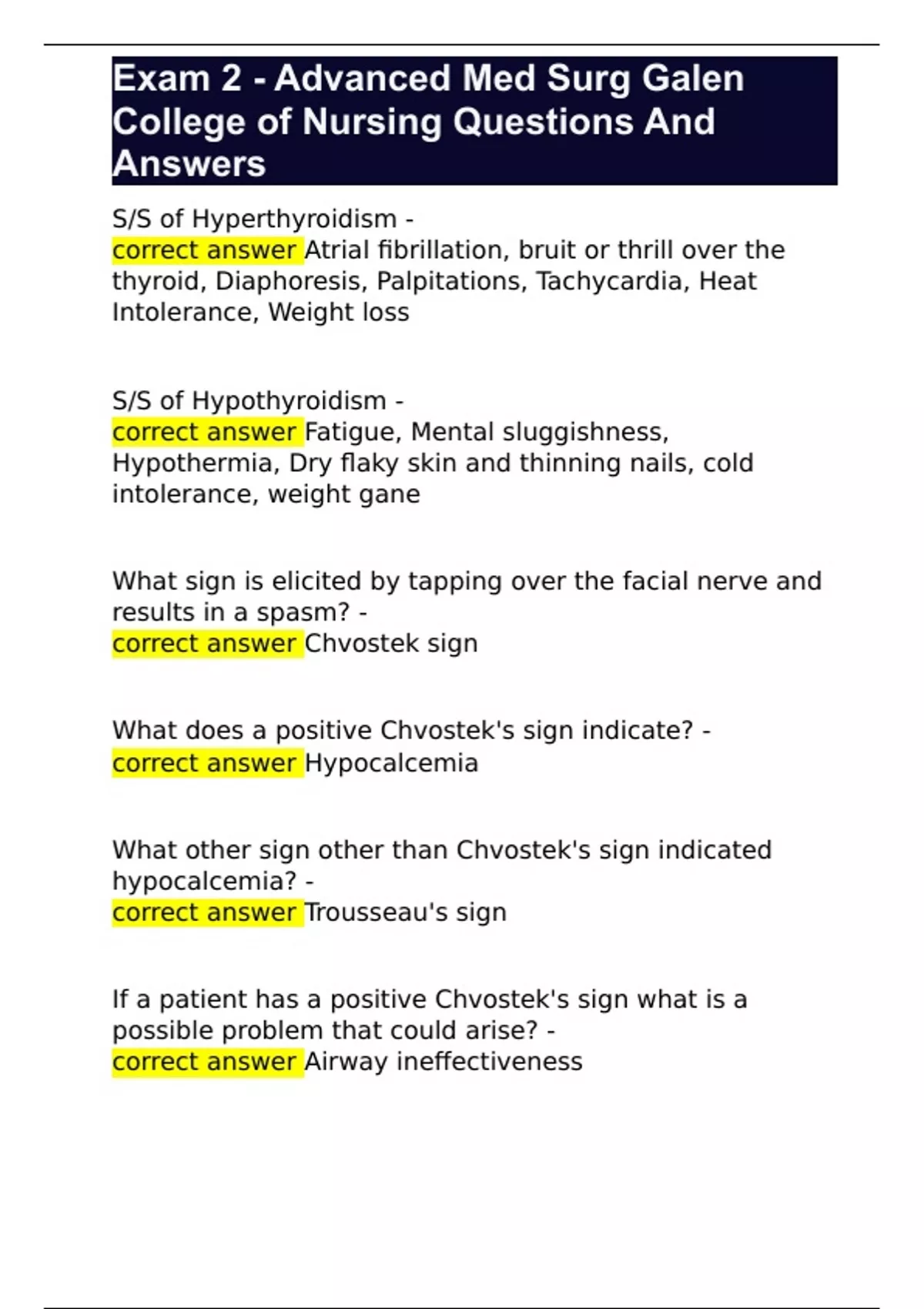 Exam 2 - Advanced Med Surg Galen College of Nursing Questions And Answers