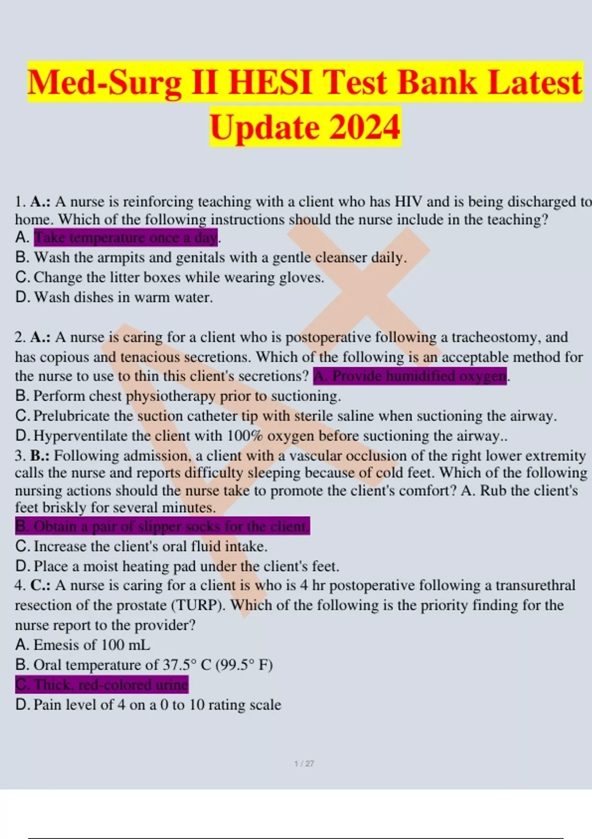 Med-Surg II HESI Test Bank Latest Update 2024 Med-Surg II HESI Test Bank Latest Update 2024
