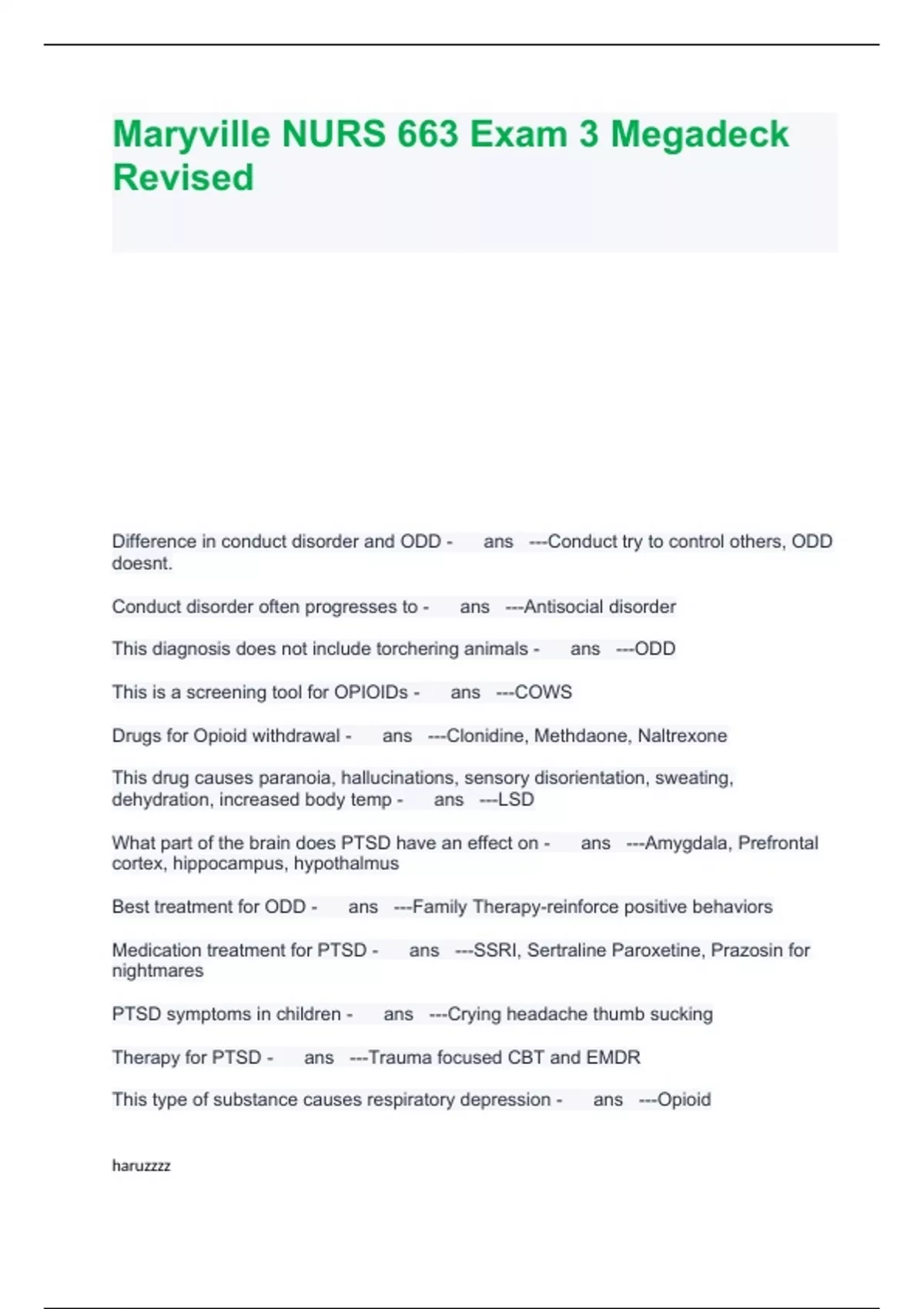 Maryville NURS 663 Exam 3 Megadeck Revised