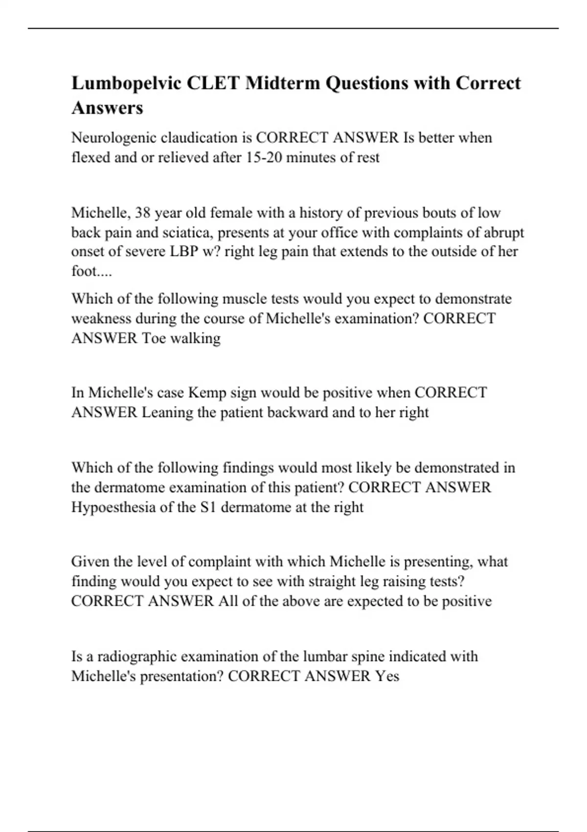 Lumbopelvic CLET Midterm Questions with Correct Answers