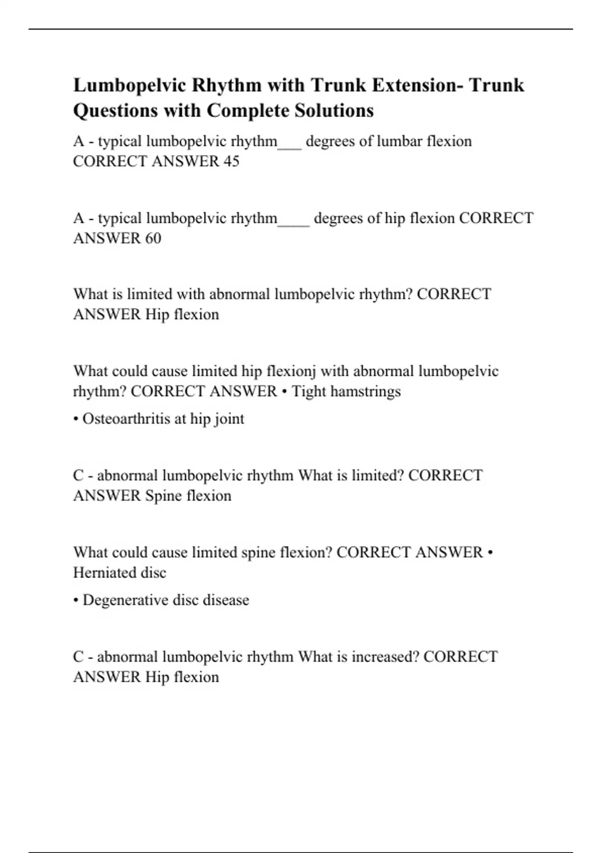 Lumbopelvic Rhythm with Trunk Extension- Trunk Questions with Complete Solutions