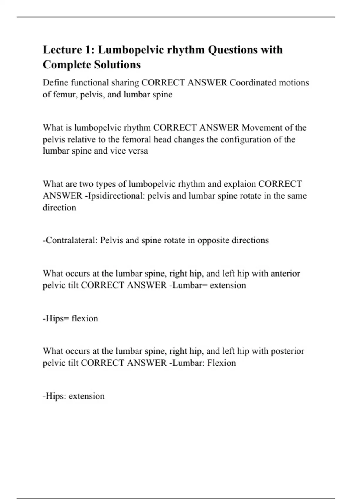 Lecture 1: Lumbopelvic rhythm Questions with Complete Solutions